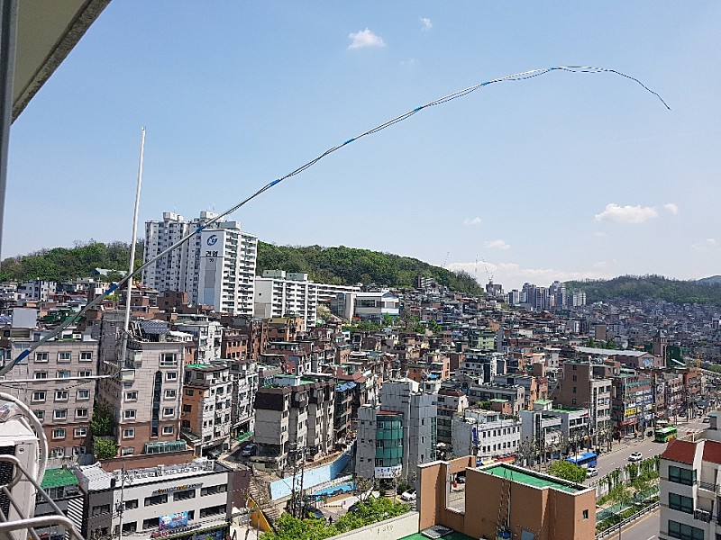 제 아파트 햄 생활을 가능하게 해주는 가장 큰 공신입니다. 5m 길이의 안테나로는 7M~50MHz 까지의 주파수만 이용할 수 있습니다. 안테나 길이가 충분하다면 필요 없이 구성할 수도 있습니다.