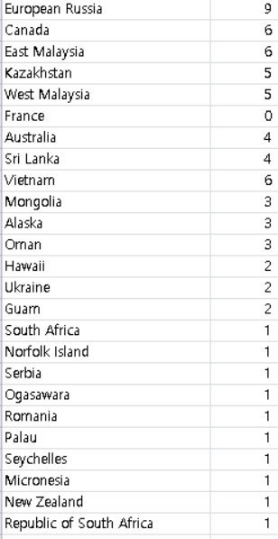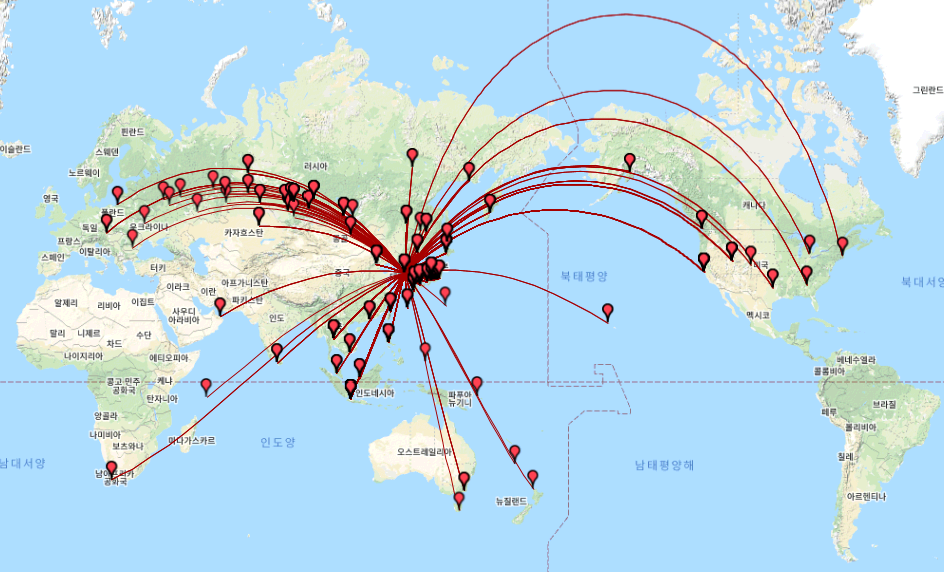 아쉽게도 유럽과 아프리카는 거의 가지 못하네요. 아주 운이 좋은 날은 동유럽국을 만나 볼 수는 있습니다.