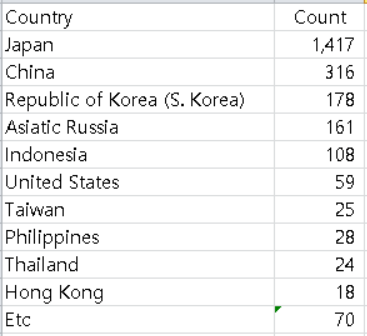 2019년 4월 20일~2020년 5월 까지 약 1년간 약 2,400 여개 국과 교신을 했습니다.