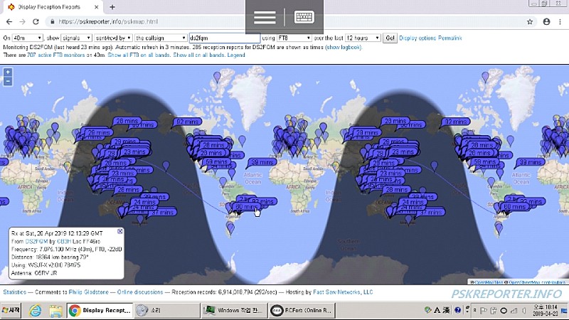 https://pskreporter.info/ 라는 사이트에서 제가 송신하는 전파가 어디에서 수신되는지를 보여줍니다.