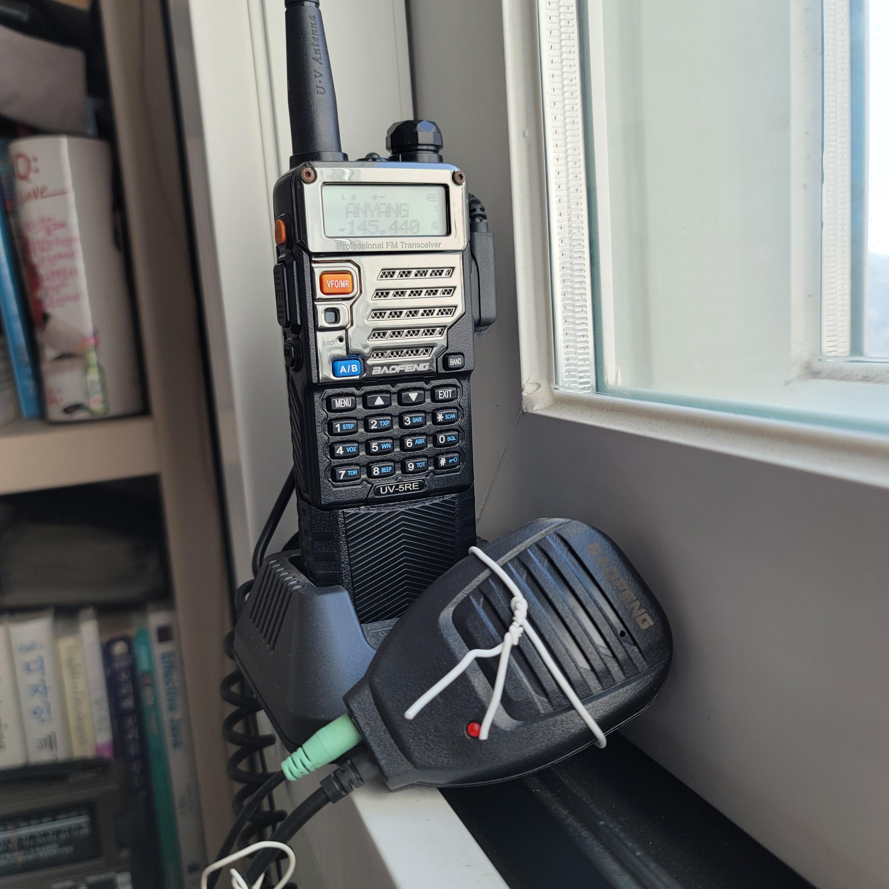 UV-5R 무전기는 창가에 살짝 올려 놓습니다. 창틀 샷시 때문에 수신시 살짝 노이즈가 있긴하지만 그냥 들을만합니다.