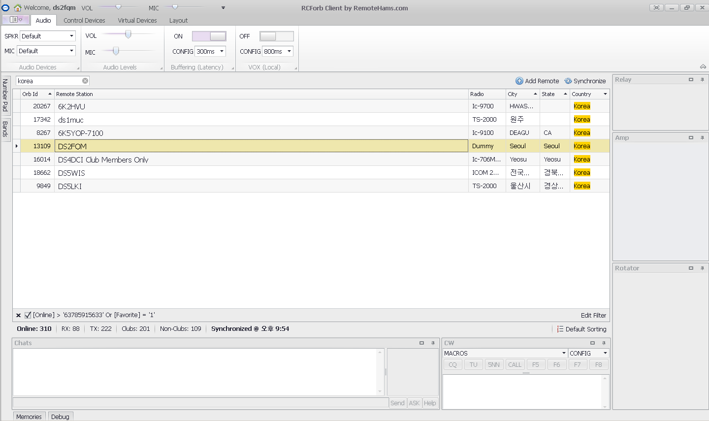 그냥 잠깐 들어가서는 실제 교신 내용을 듣기는 힘들고 적어도 한두시간 혹은 반나절정도 접속한 상태로 유지하면 다른 국장님들의 교신을 들어볼 수 있습니다.