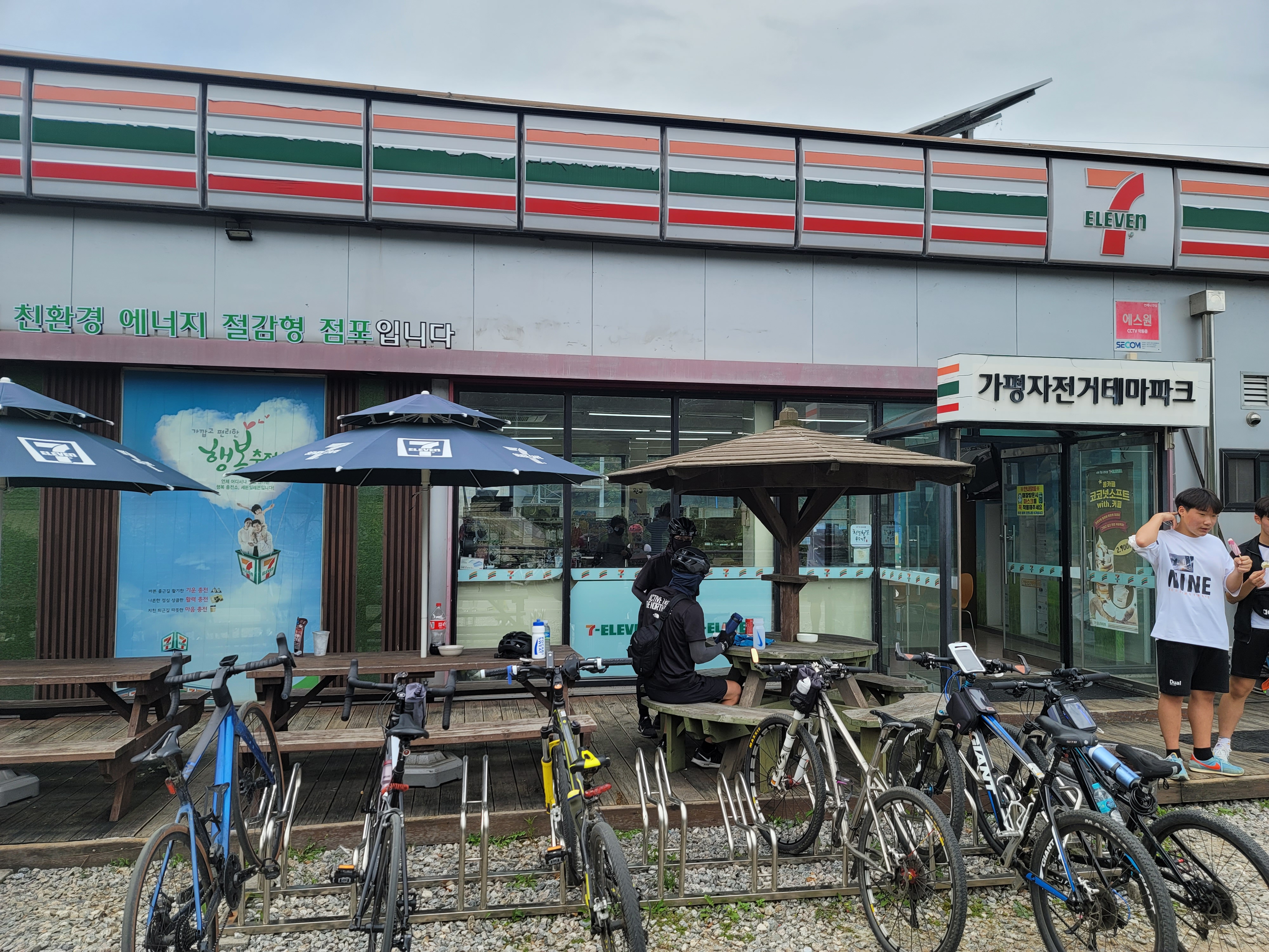 고도 그래프는 지금보니 아래와 같은데 중간에만 살짝 오르막이고 그외는 사실 크게 영향 받지 않았습니다. 아마 중간쯤에 '7 Eleven 가평자전거테마파크' 점이 있으니 이곳에서 쉬어가면 좋습니다.