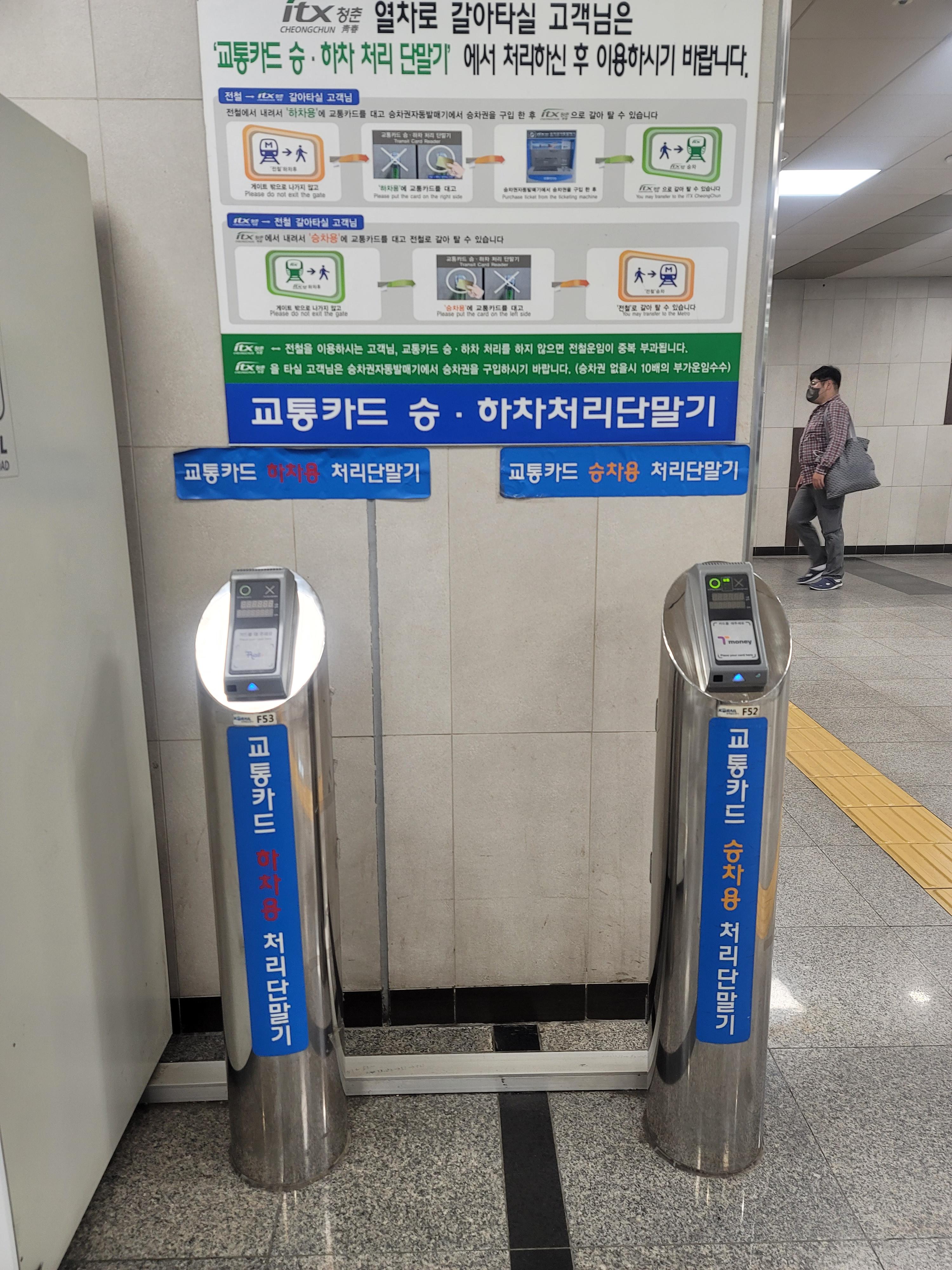 ITX 는 기존 교통카드가 아니라 QR 티켓으로 승차를 해야합니다. 해서 2호선이나 다른 수도권 지하철로 갈아탈 때는 반드시 '교통카드 승,하차 단말기' 를 찾아서 승차 태그를 해주어야 한다는데, 이게 어디에 있는줄 모르니 한참이나 헤맸습니다.