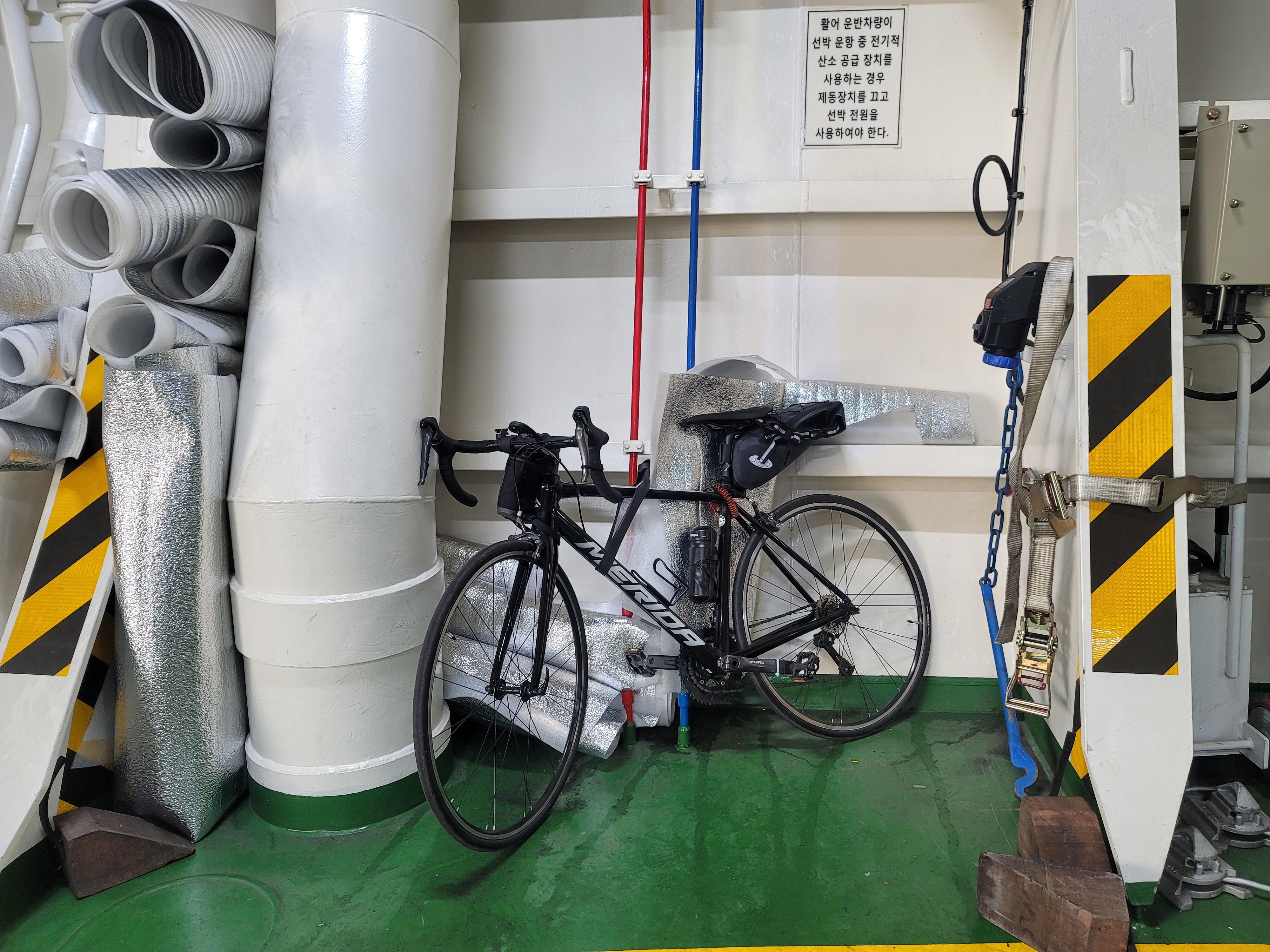 5. 고가의 자전거라면 가장 마지막에 배에 싣는 편이 좋고 다른 자전거들이 심하게 겹치지 않도록 지켜보시는 것이 좋습니다(저는 뒷바퀴 휠이 망가져서 제주도에 내려서 휠을 교체 하였습니다.ㅠㅠ).