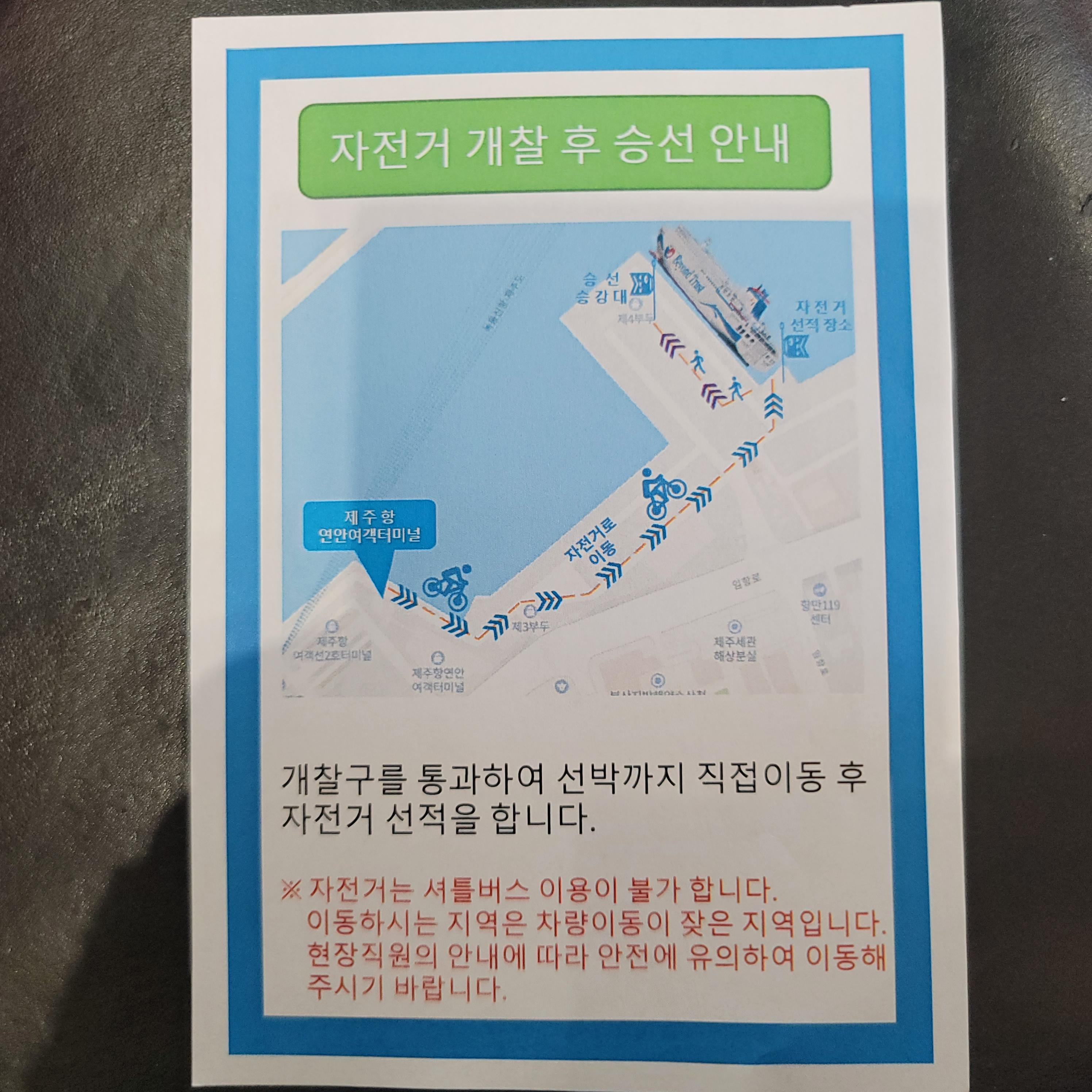 - 차량은 4부두로 가라고 안내 문자가 오는데 자전거는 이쪽으로 가시면 안되고 무조건 '제주항 연안여객터미널' 로 가셔야 합니다.