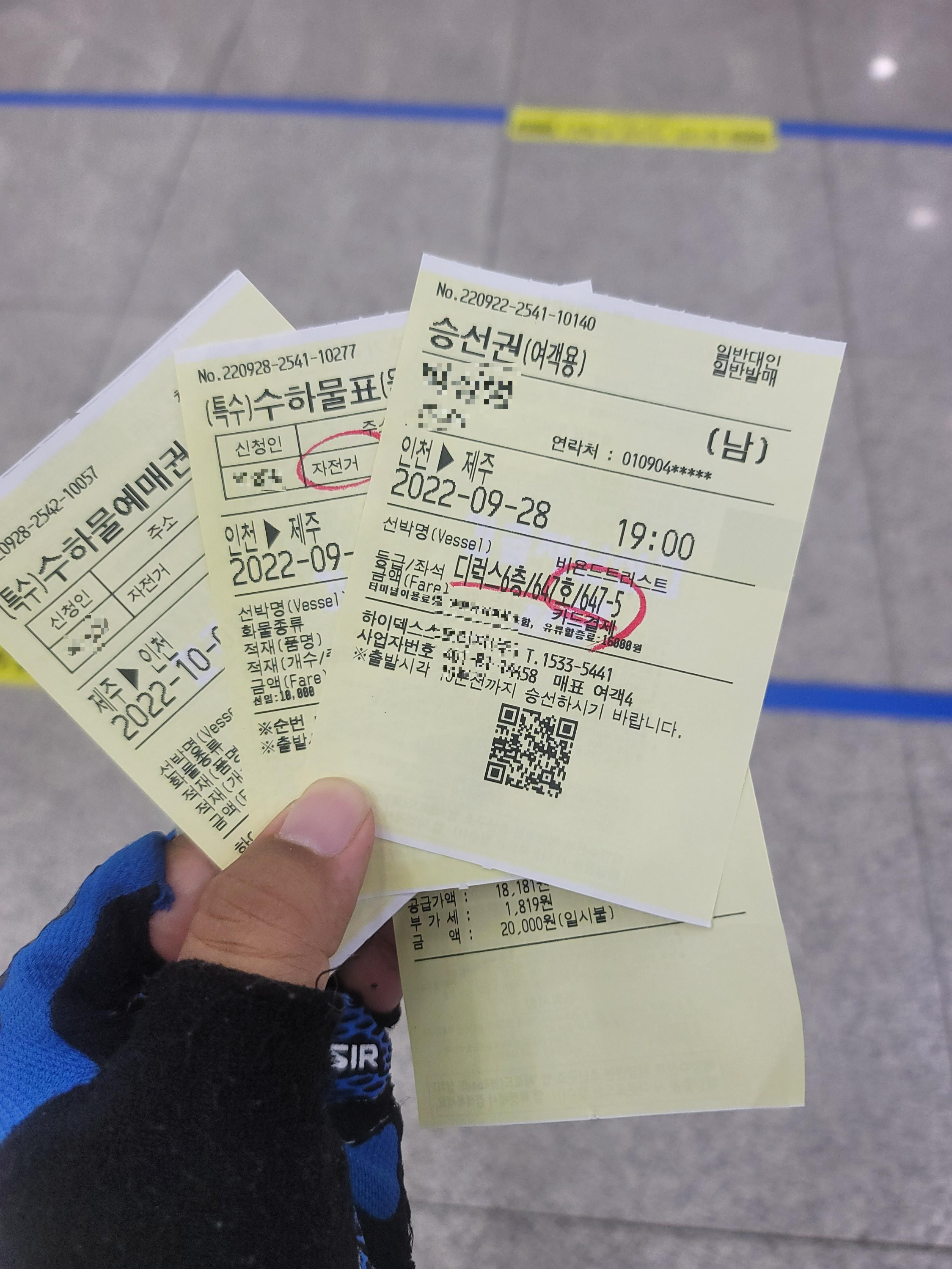 여러가지 사건은 많았지만 어쨌든 제주 종주는 완주를 하였습니다. 이 글에서는 배편의 내용만을 다룹니다.