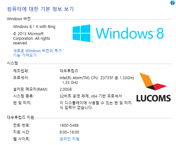 장점 : 2GB 메모리에서는 Windows 10 보다 Windows 8.1 이 월등히 쾌적합니다. 평소 발열도 거의 없음.