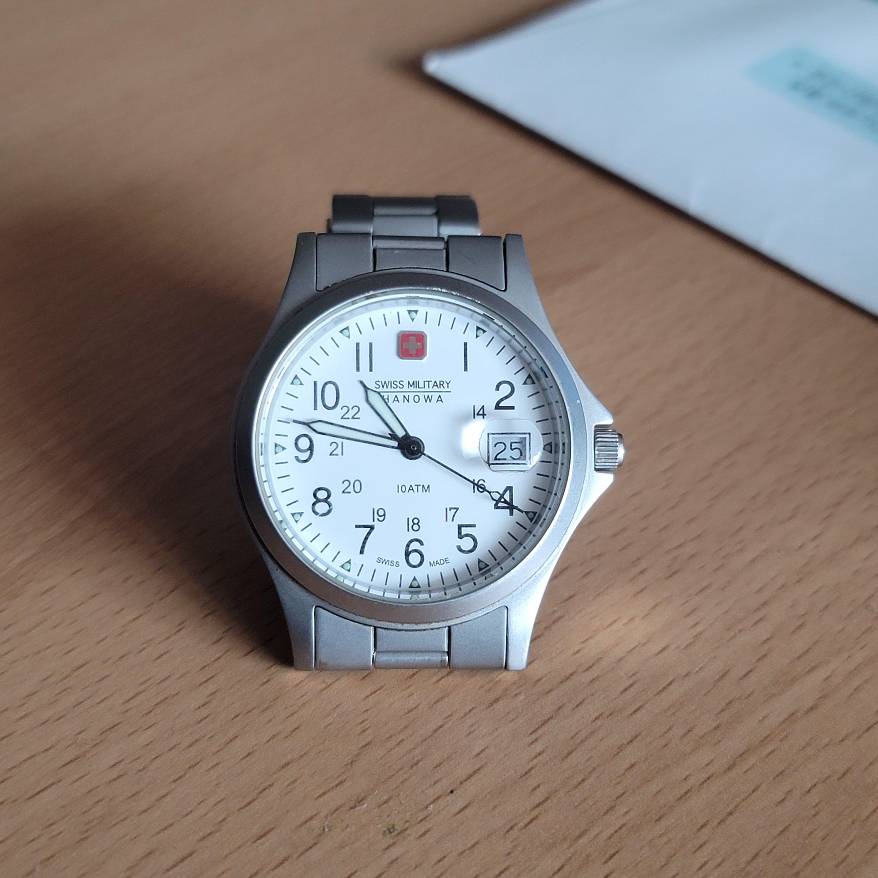 모델명은 SWISS MILITARY/ HANOWA 라고 적혀 있는 녀석입니다. 많이 비싸지 않고 깔끔한 디자인으로.