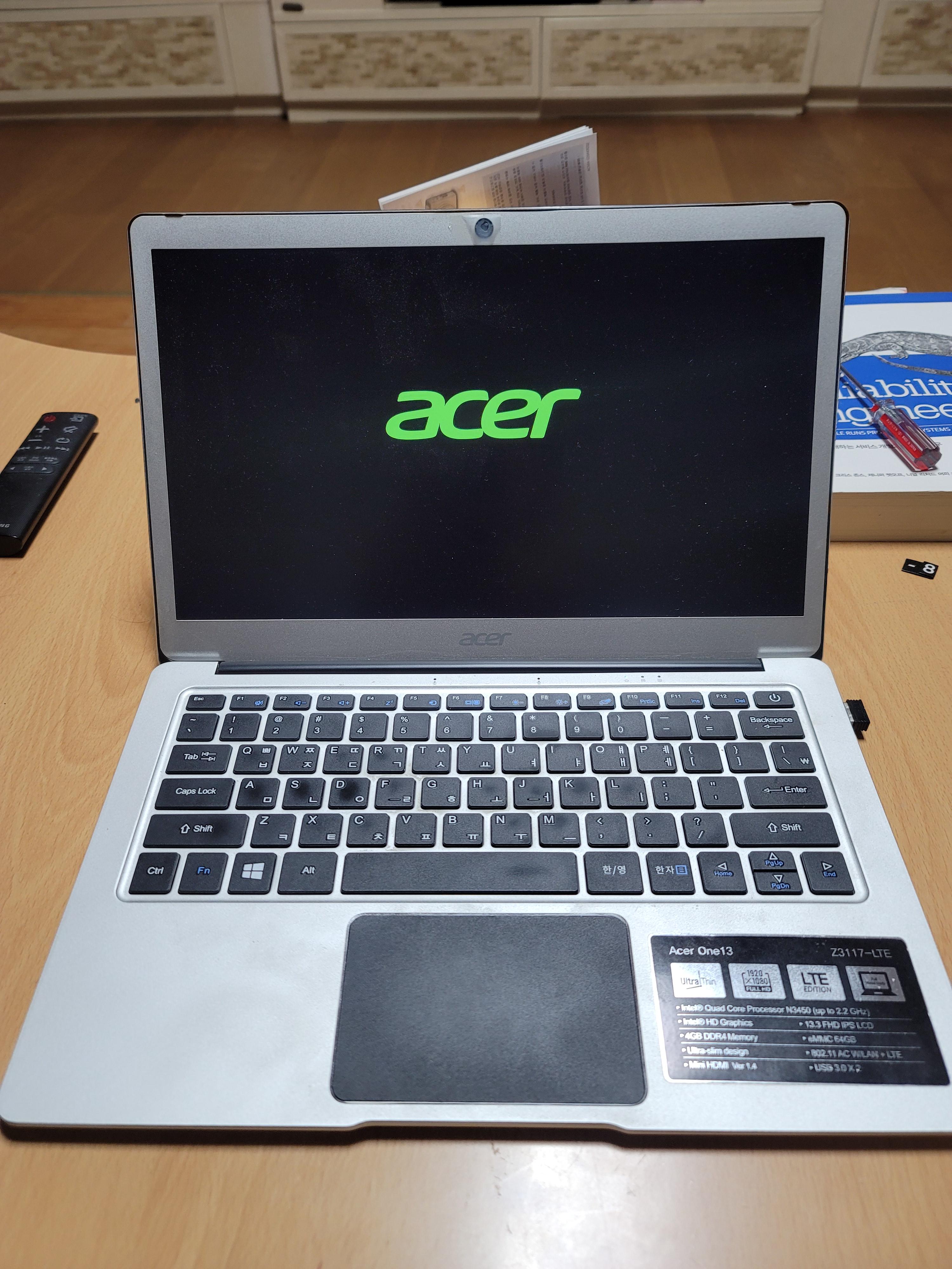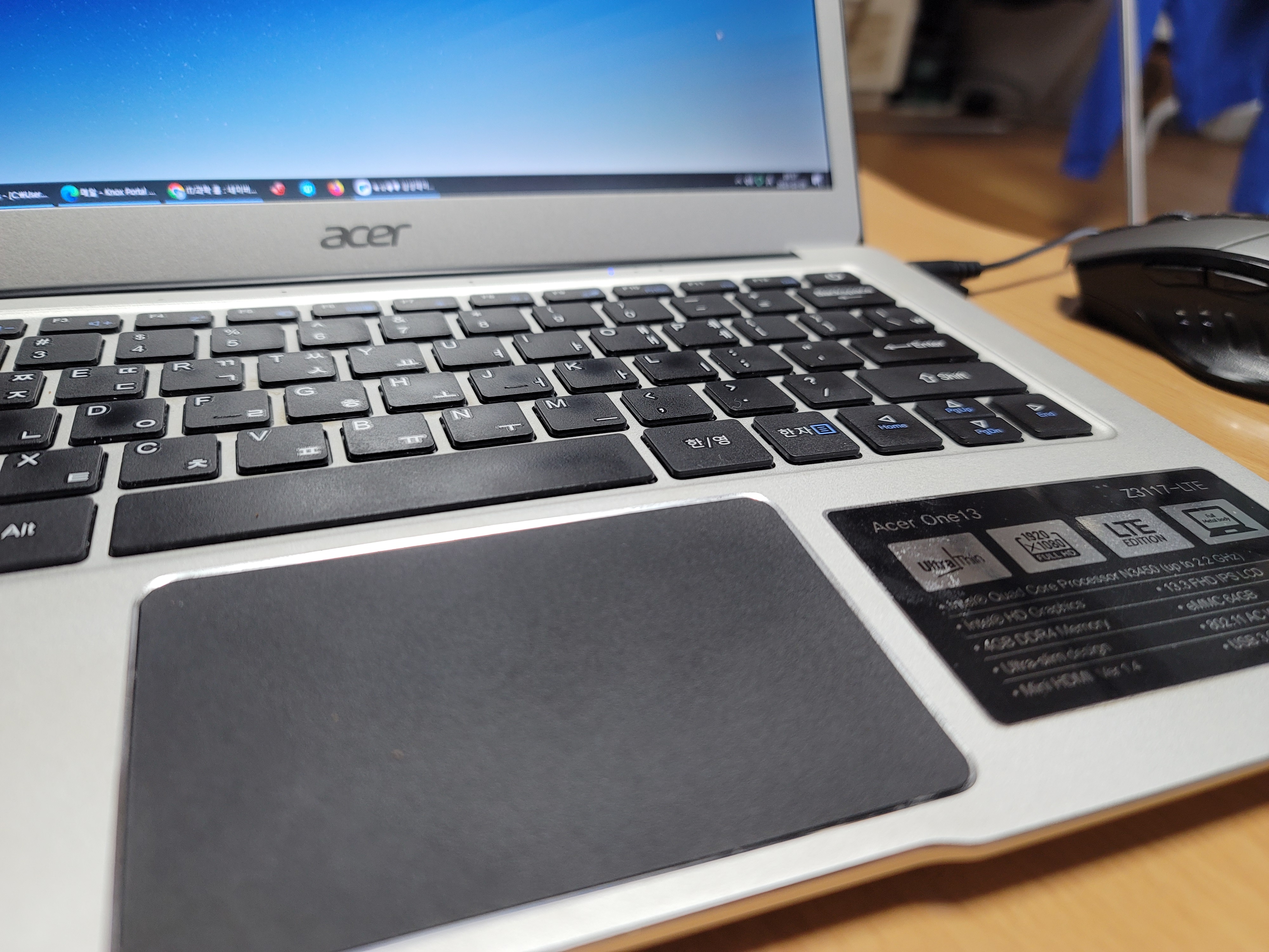 코로나 유행전 저렴하게 구입해서 집에서 재택 근무용으로 잘 사용중인 Acer One 13 LTE 입니다. 자체 성능은 매우 낮지만 13인치에 해상도가 FHD 이고 LTE 모듈을 내장해서 외부에서도 WIFI 없이도 인터넷을 할 수 있습니다.