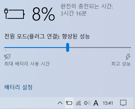 ps. 배터리만으로 6시간째 사용중인데 퍼센트로는 이정도 남았습니다. 잠시뒤 전원 플러그를 꼽으니 완충에 3시간16분 정도 걸린다고 나오네요.