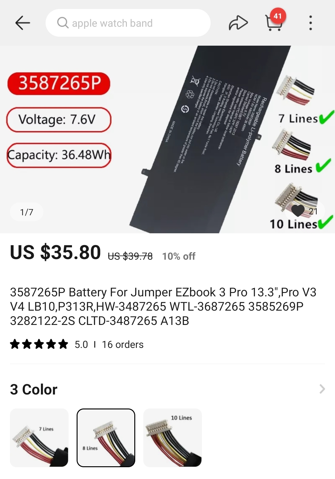 다음 모델이고 8Lines 짹을 골라 줍니다. 용량은 36.48Wh 로 똑같은 것 같습니다. 주문 후 알리에서는 배송 추적도 안되고 해서 오려면 멀었나보다 싶었는데 2주 좀 안됐는데 택배가 도착을 했네요.