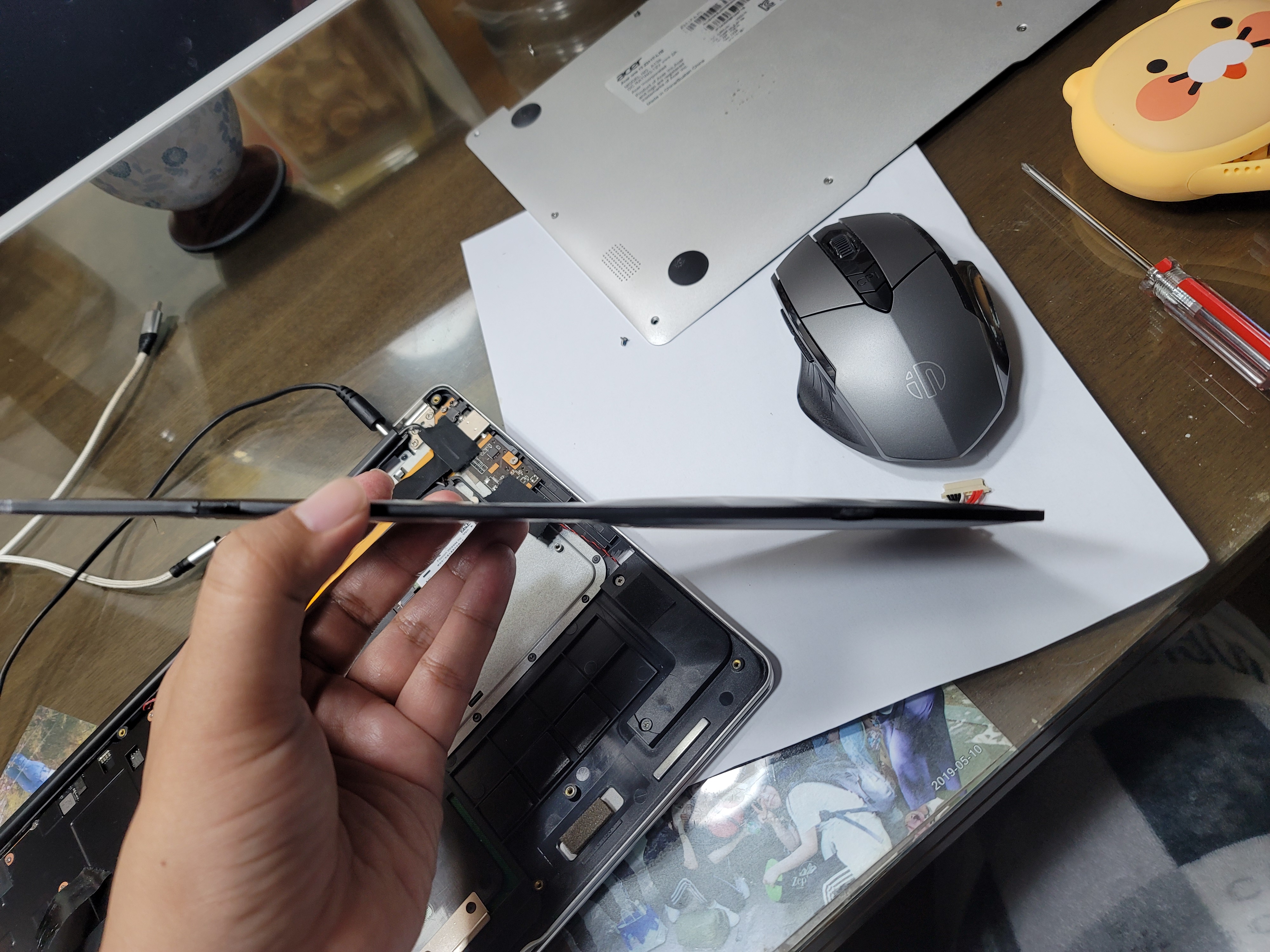 하판 나사를 풀고 보니 다음처럼 배터리가 부풀어 있었습니다.