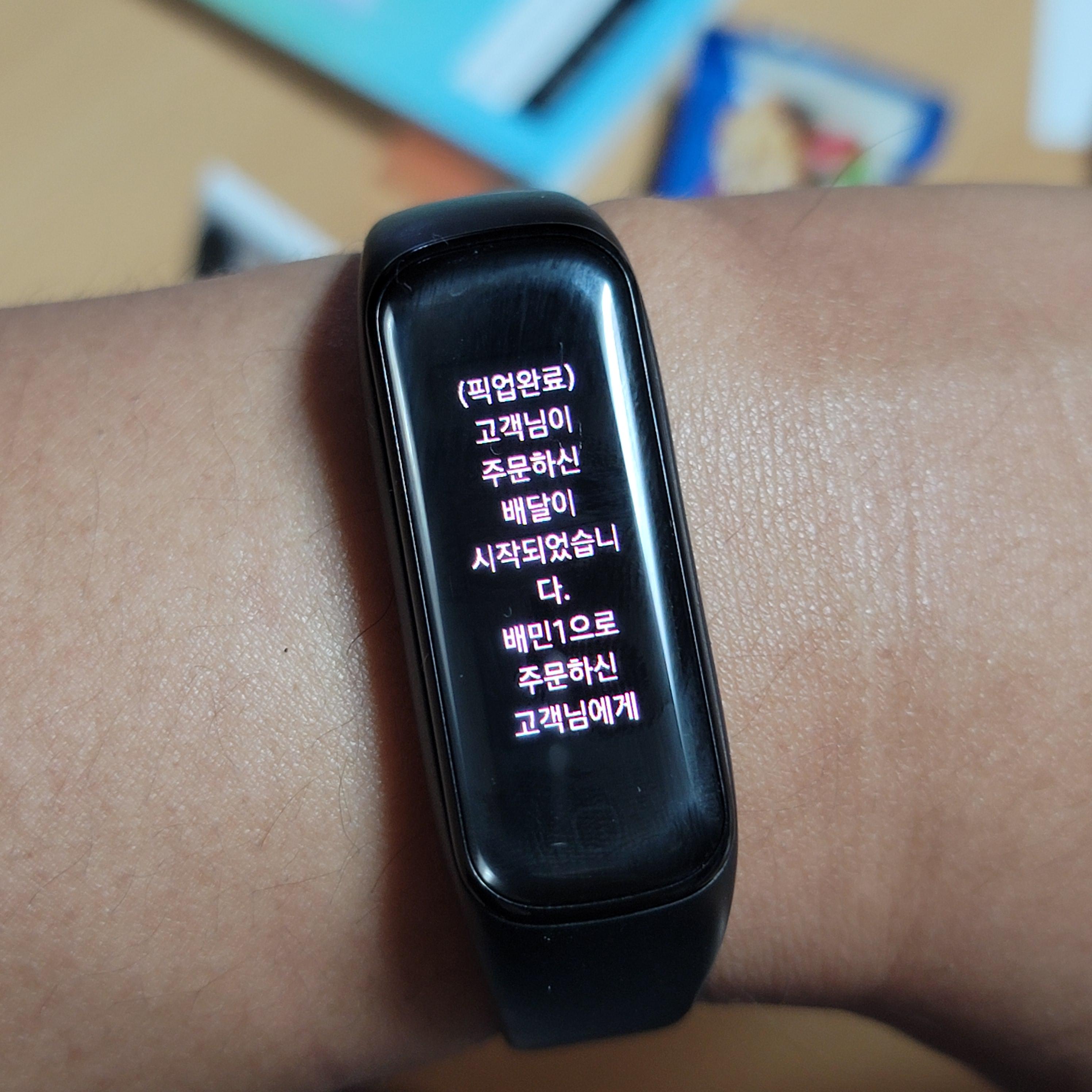 크기도 작고 배터리도 오래(10일 이상 사용 가능하나 1주일에 한번 충전) 가는데 핸드폰 알림 전달 기능이 너무나도 잘 됩니다. 글씨가 좀 작긴해도 읽는데는 충분합니다.