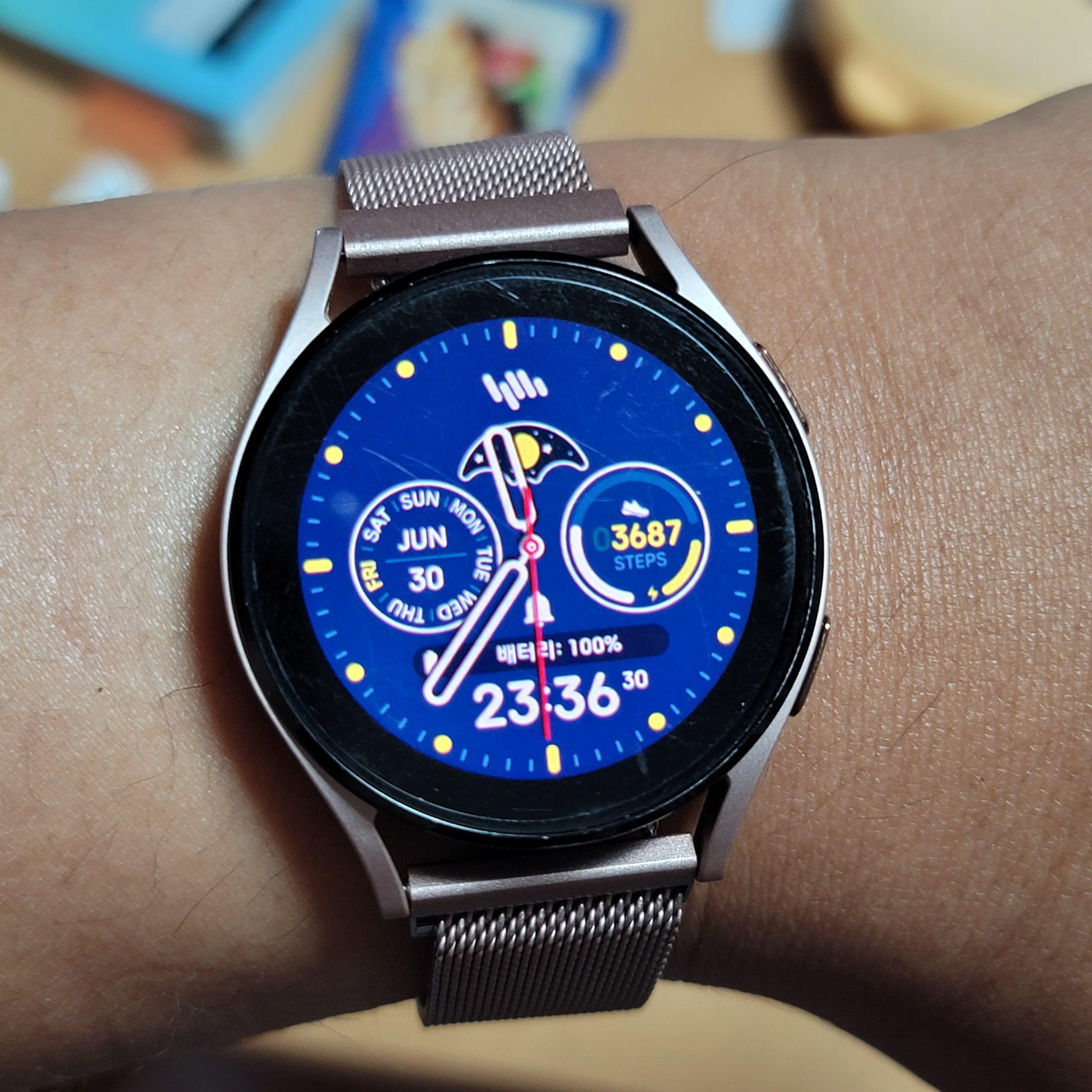핏2는 그냥 운동용 밴드라는 느낌이 강한데 그나마 워치4는 '시계를 차고 다니는구나' 하는 느낌적인 느낌...