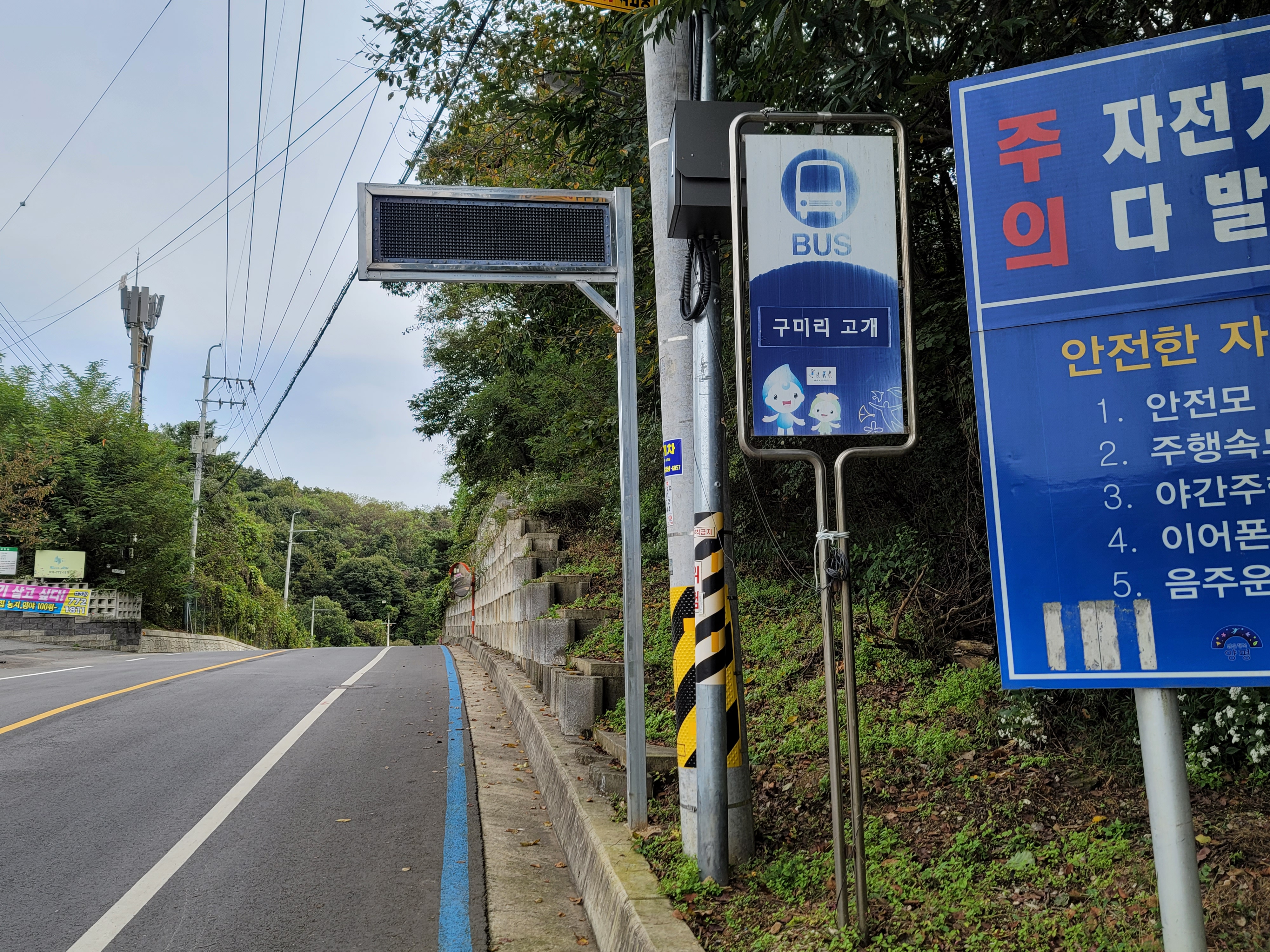 처음 만나는 고개인 '구미리 고개(후미개 고개)' 에서 크게 무리하지 않았는데도 50km 를 넘어가니 2% 짜리 경사만 있어도 양쪽 허벅지에서 쥐가 나네요. 이후 '창남이 고개' 가 좀 더 높은것 같은데 이를 포함해서 작은 언덕도 모두 끌고 올라갔습니다.