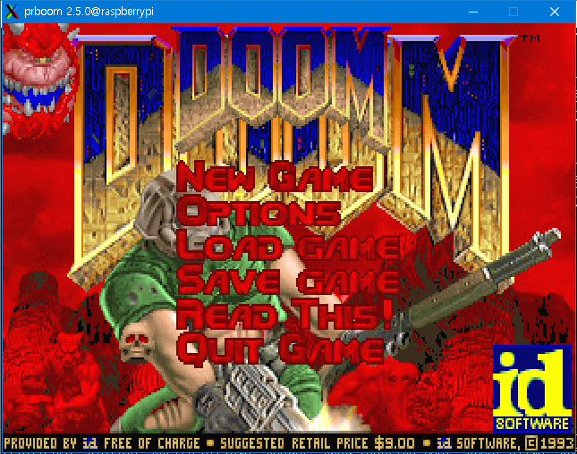 라즈베리파이로 보내고 실행을 해 봅니다. 왜인지는 모르겠는데 doom.wad 외에 prboom.wad 까지 모두 한 디렉토리에 넣어야 실행이 됩니다.