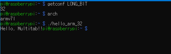 pi@raspberrypi:~/tmp$ ./hello_arm_32