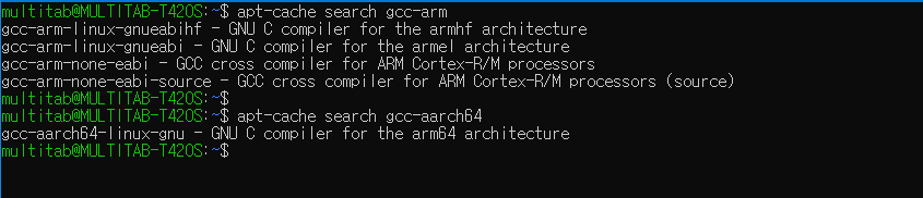 multitab@MULTITAB-T420S:~$ apt-cache search gcc-aarch64