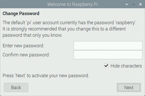 기본 유저는 pi 이며 암호를 세팅해 줍니다. 참고로 lite 버전에서는 이과정이 없으며 기본 암호는 pi/ raspberry 입니다.