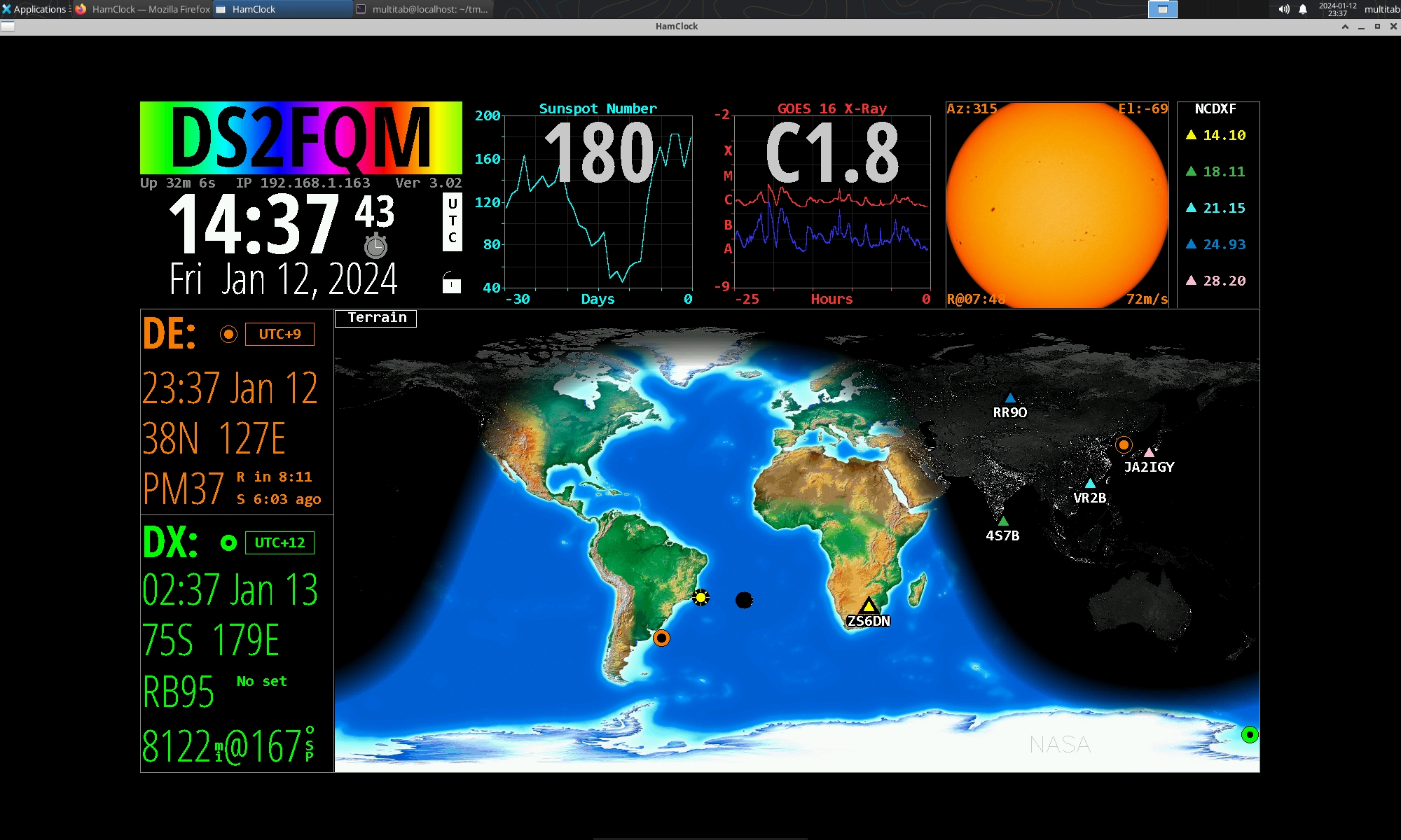 HamClock 이란? 실시간 우주 날씨, 무선 전파 모델, 작동 이벤트 및 무선 아마추어에게 특히 유용한 기타 정보를 제공하는 키오스크 스타일의 애플리케이션입니다. from 해당 홈페이지