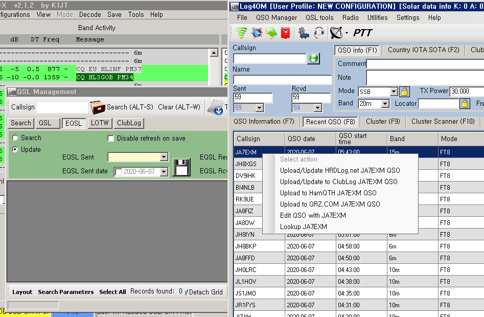 ESQL 과 LOTW 는 QSL Management 에서 한번에 올릴 수 있으며 Clublog 는 OSO Manager 에서 하나씩 찍어서 올려도 됩니다.