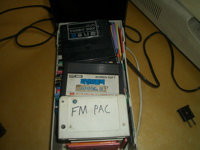 MSX 기종은 디스켓 외에도 '롬팩' 이라는 것이 있어 본체에 꼽기만 하면 간편하게 게임을 로드할 수 있었습니다. 여러가지 사용성을 본다면 여러번 정보를 저장할 수 있는 디스켓이 더 좋은 것이지만 로딩 시간도 거의 없고 꼽기만 하면 게임이 실행되는 롬팩이 부러웠습니다. 그리고 보니 MSX 기종은 디스켓도 3.5인치인 작은 것을 사용했었군요.