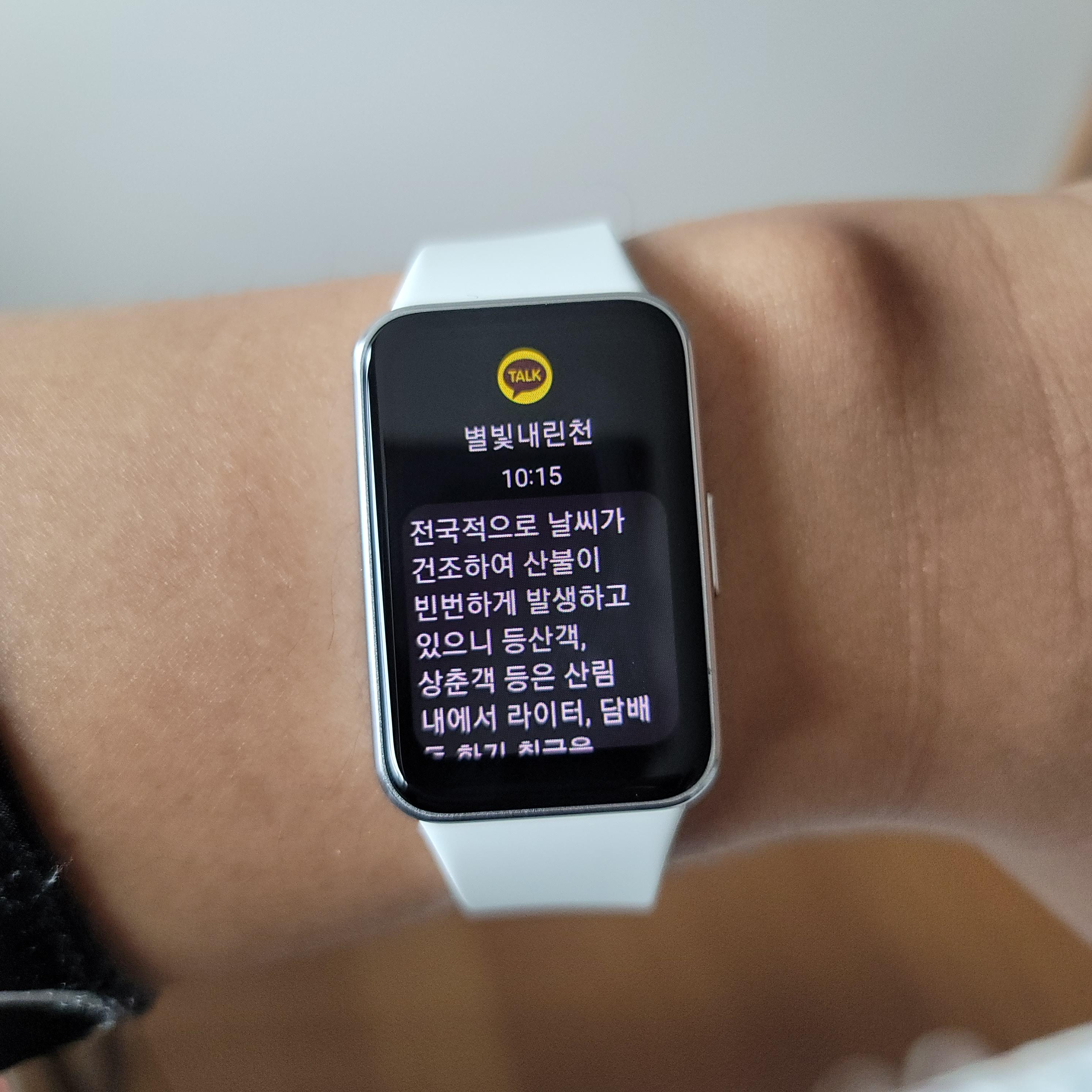 카카오톡 문자의 경우는 거의 워치급으로 많은량의 글자를선명하게 확인할 수 있습니다. 아쉽게도 이모티콘이나 사진 내용은 볼 수 없습니다.(워치에서는 볼 수 있지요.)