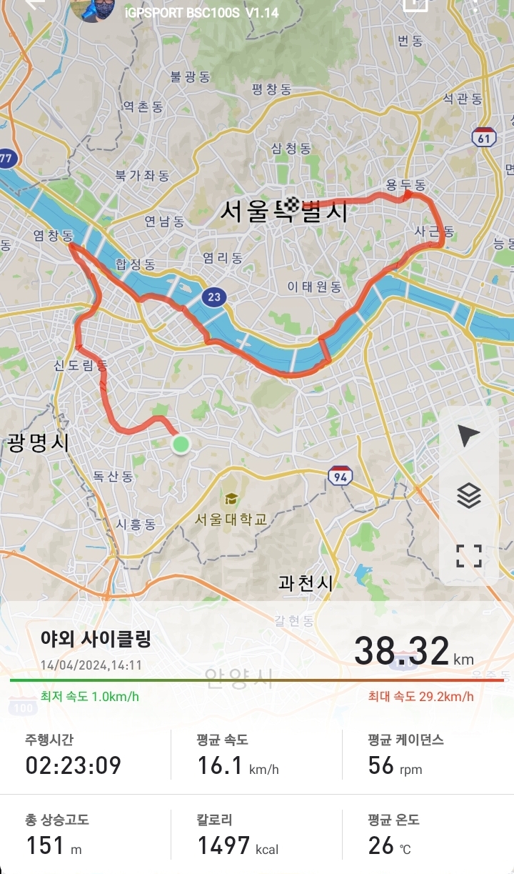 ps. 간만에 케이던스 센서 배터리 갈아줬는데 속도센서로 인식하는 바람에 초반에 한 5km 정도 기록이 날아가버렸네요.