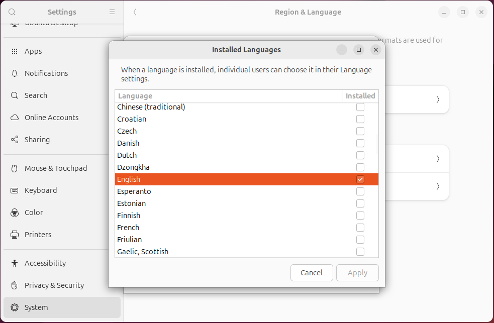 System - Manage Installed Languages 를 선택해 줍니다.