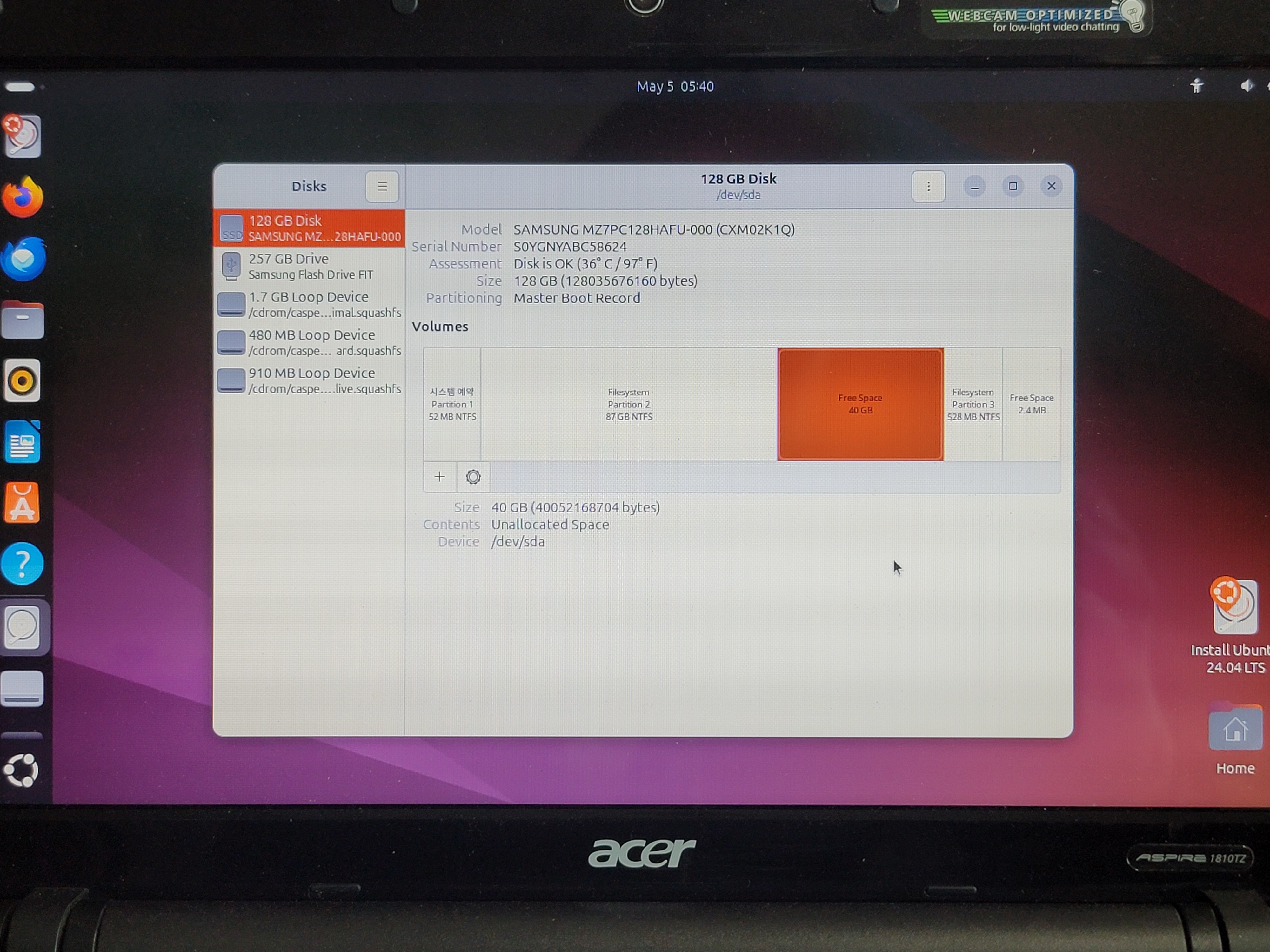 Windows 파티션을 깨끗하게 만든후 Ubuntu 24.04 재설치를 진행하였습니다.
