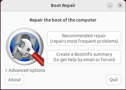 $ sudo apt install -y boot-repair