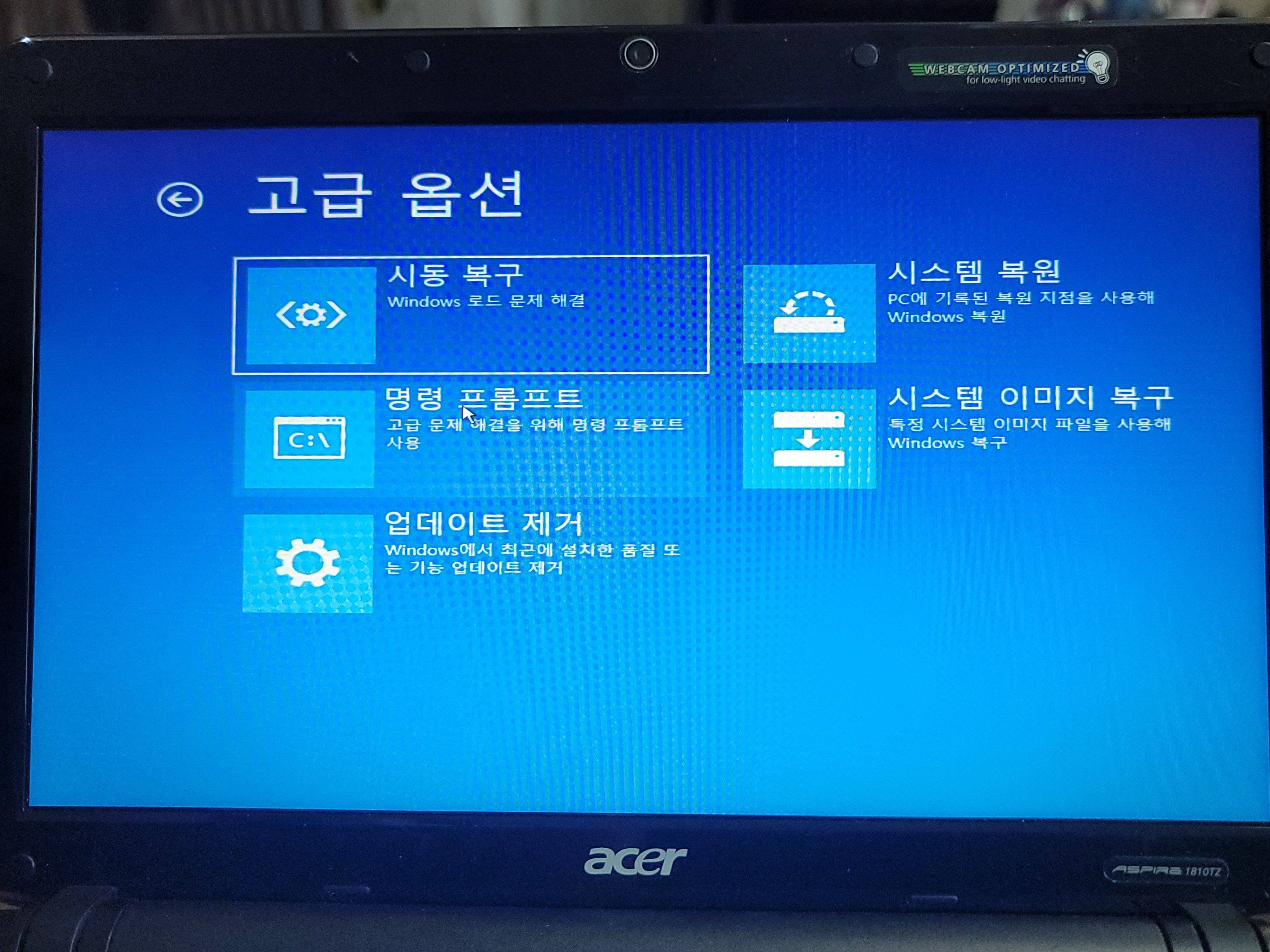 혹시나 하고 '시동 복구' 를 선택해 봤으나 문제가 없다고 하고 바로 끝났습니다.