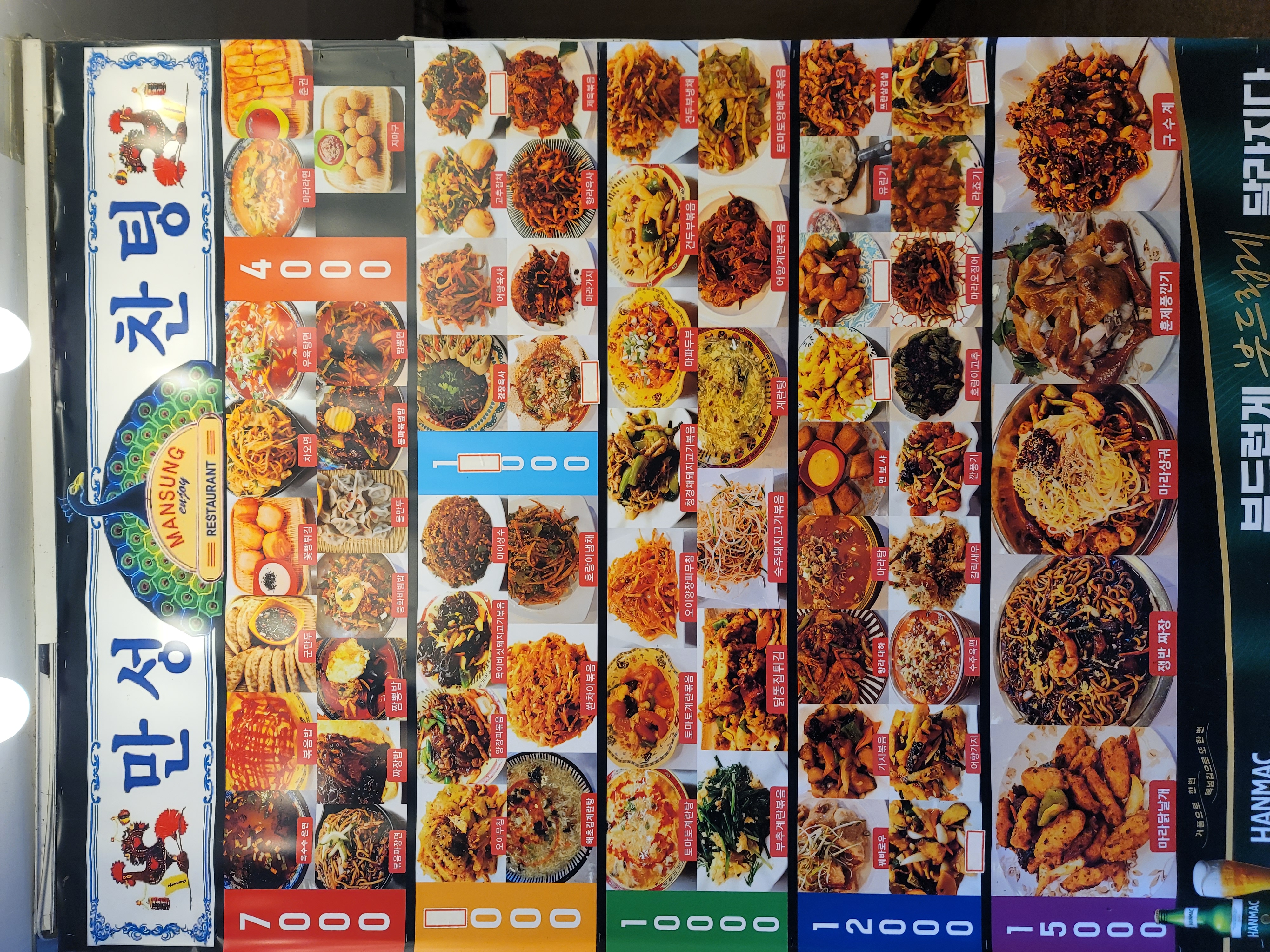 입구쪽에 있는 메뉴판 사진입니다. 종류가 정말 많은데 일부 음식은 안에 주문 키오스크에서는 보이지 않는 것도 몇개 있었습니다.
