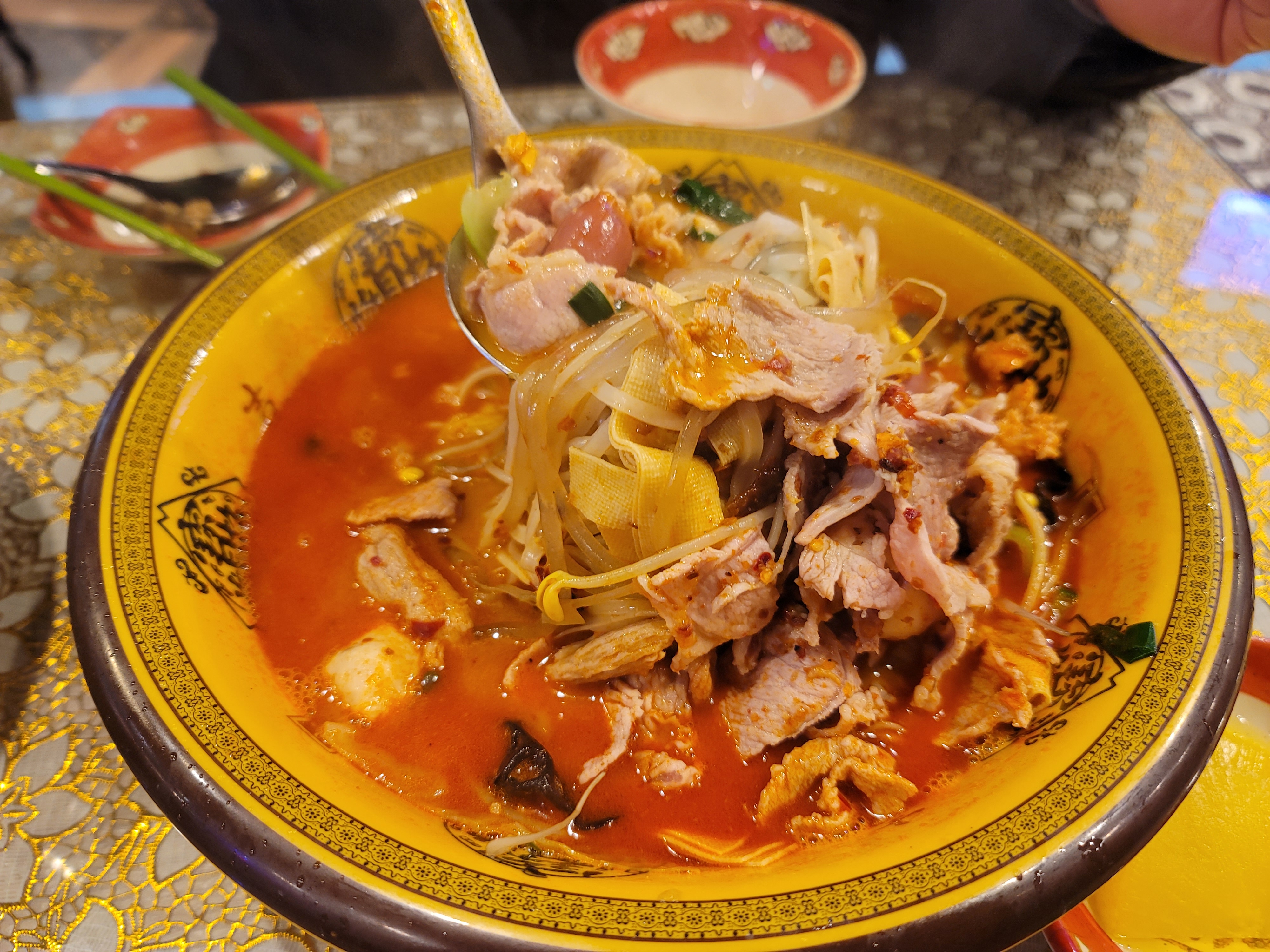 고기가 대만식처럼 두꺼운 고기가 아니라 차돌박이 같이 얇은게 들어가 있어 약간 아쉽지만 맛은 그럭저럭 괜찮습니다. 기름기가 많고 향신료 향이 강합니다. 친구 말로는 마치 추어탕 분위기라고 표현하네요.가격이 저렴해서(7천원) 식사로 괜찮습니다.