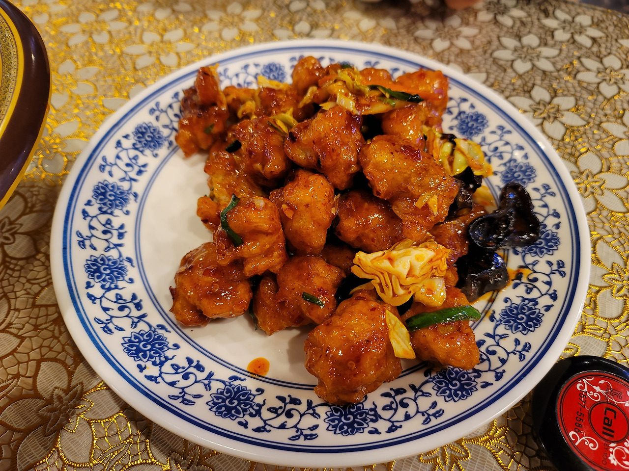 가지볶음이었는지 기억이 확실하지 않네요. 가지가 네모처럼 짤막한 스타일입니다. 제가 기억하는 가지볶음은 가지가 흐물흐물하면서 부드러웠는데 여기는 좀 탱글탱글 합니다.