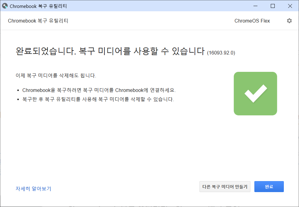 드디어 Chrome OS Flex 설치가 완료되었습니다.