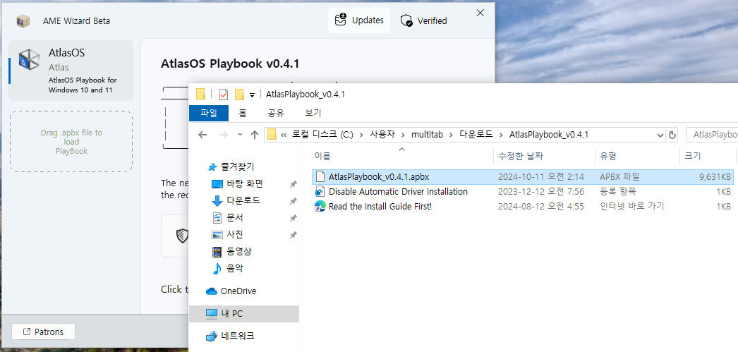 Atlas Playbook 과 AME Wizard 를 각각 눌러서 다운 받습니다.