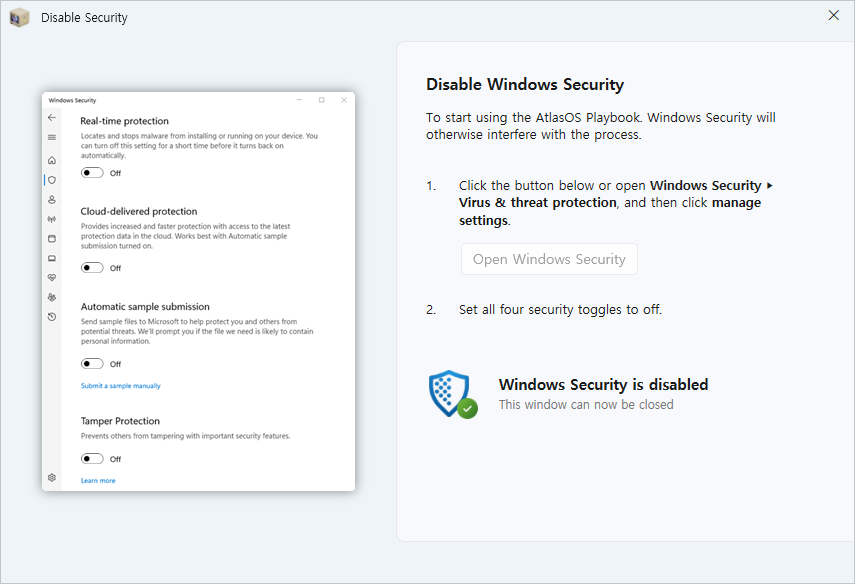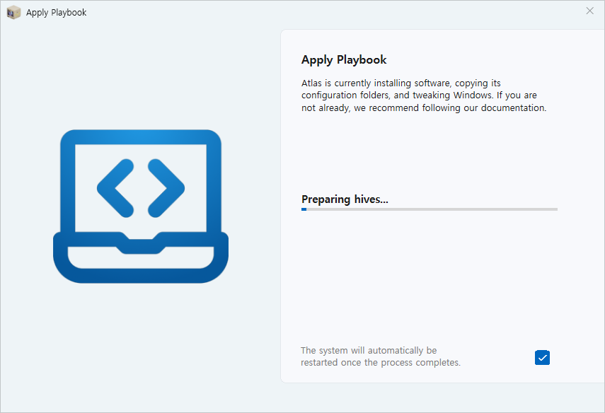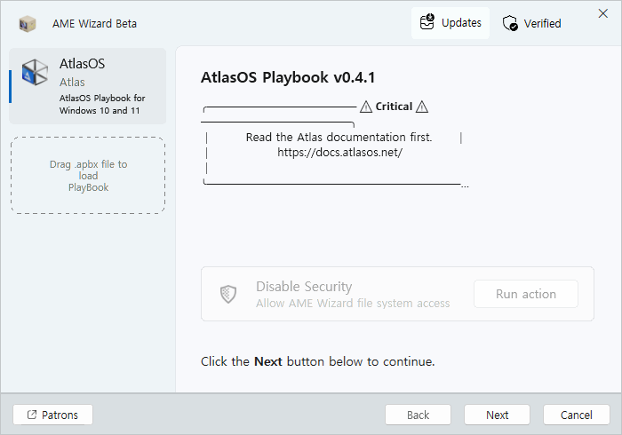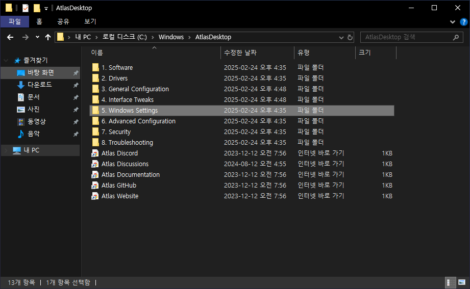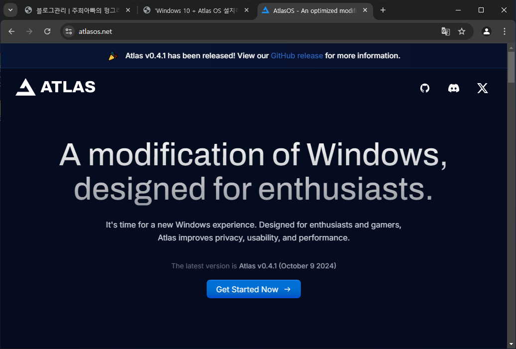 Atlas OS 는 설치 CD 나 ISO 이미지가 별도로 있는 것이 아니라 원래대로 Windows 10/11 을 설치하고 이후에 바로 실행을 해주면 윈도우즈의 군살을 제거해 줍니다.
