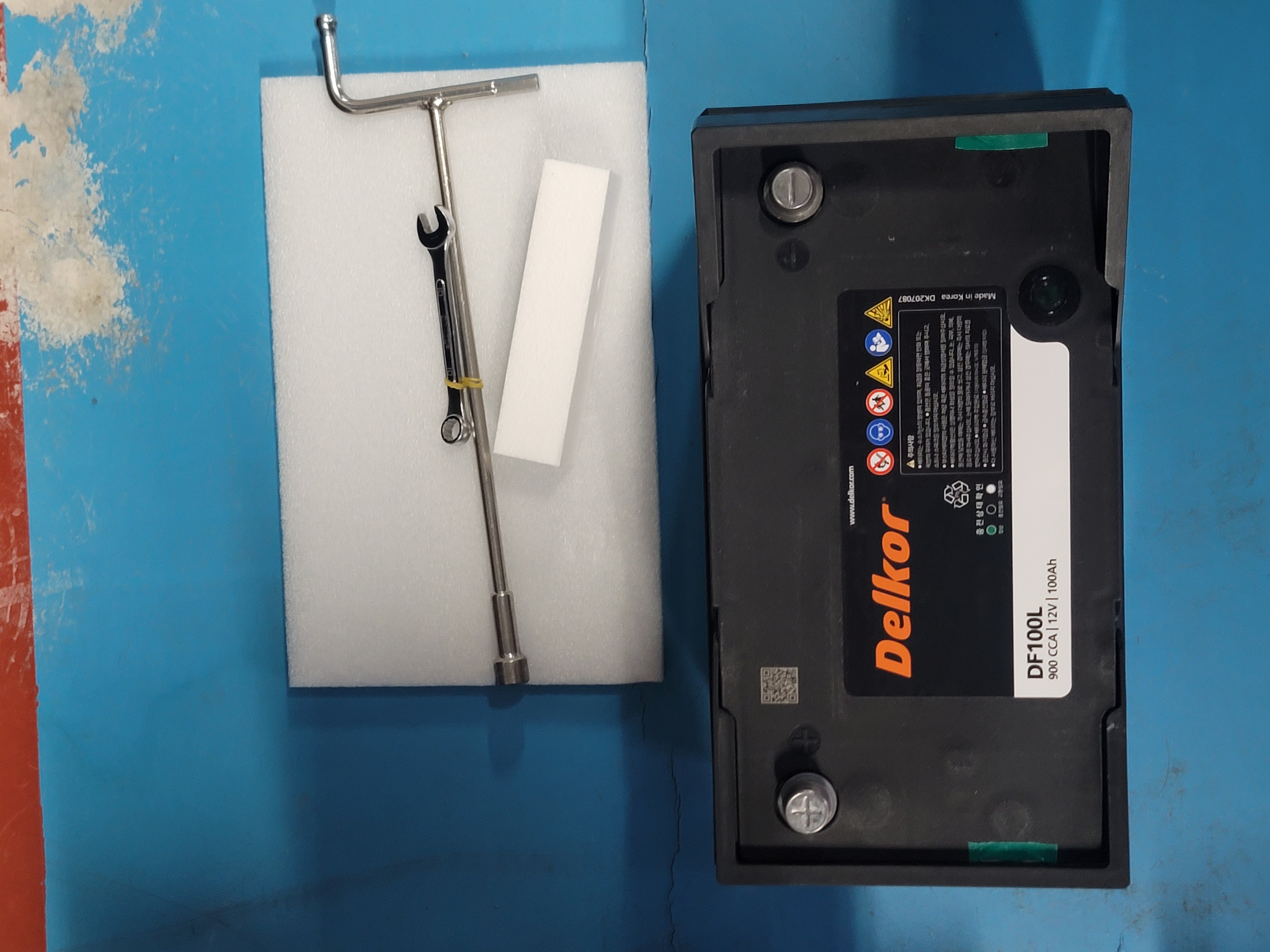 공구는 배터리 단자쪽 분해용 스패너가 10mm 이고 보통 RV 의 경우 배터리 중앙 고정대 분리용이 12mm 입니다.