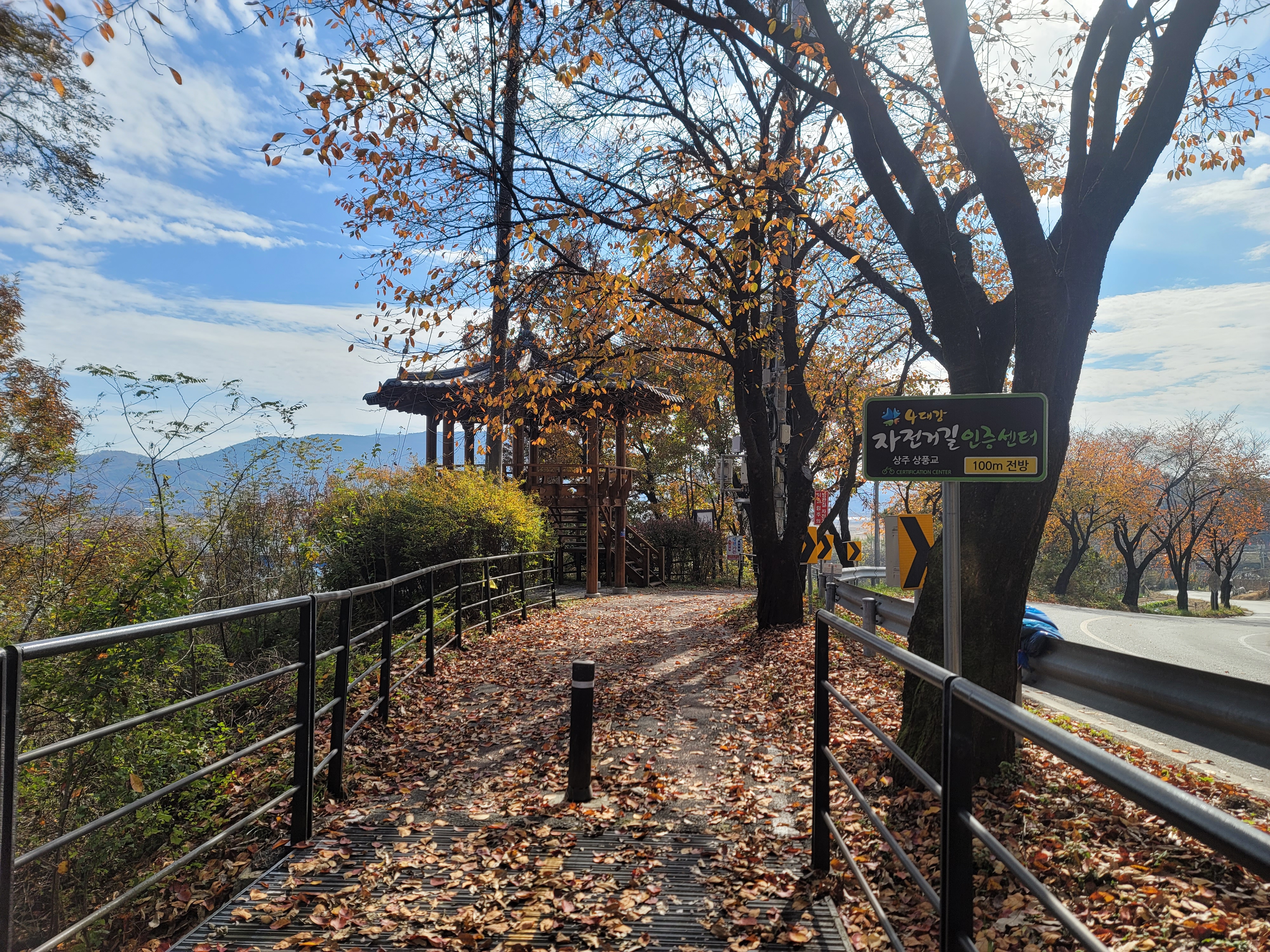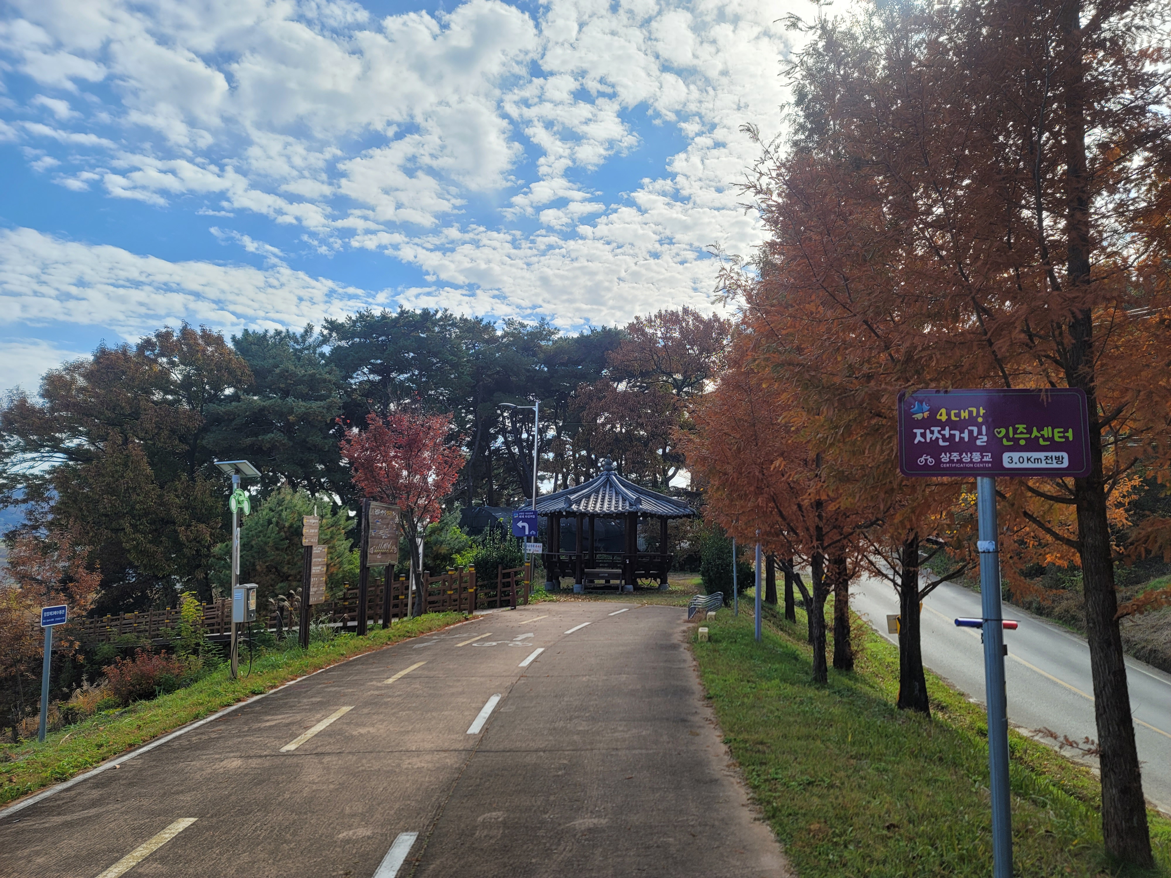 상주보에서 '상주 종합버스터미널' 까지는 약 14km 정도로 멀진 않은데 80km/h 차량 도로가 포함되어 있고 그 길 따라서 계속 오르막이라서 약간 위험합니다. 길가에 자전거가 다닐만한 여유 공간이 있긴 하지만 차들이 워낙 쌩쌩 달립니다.
