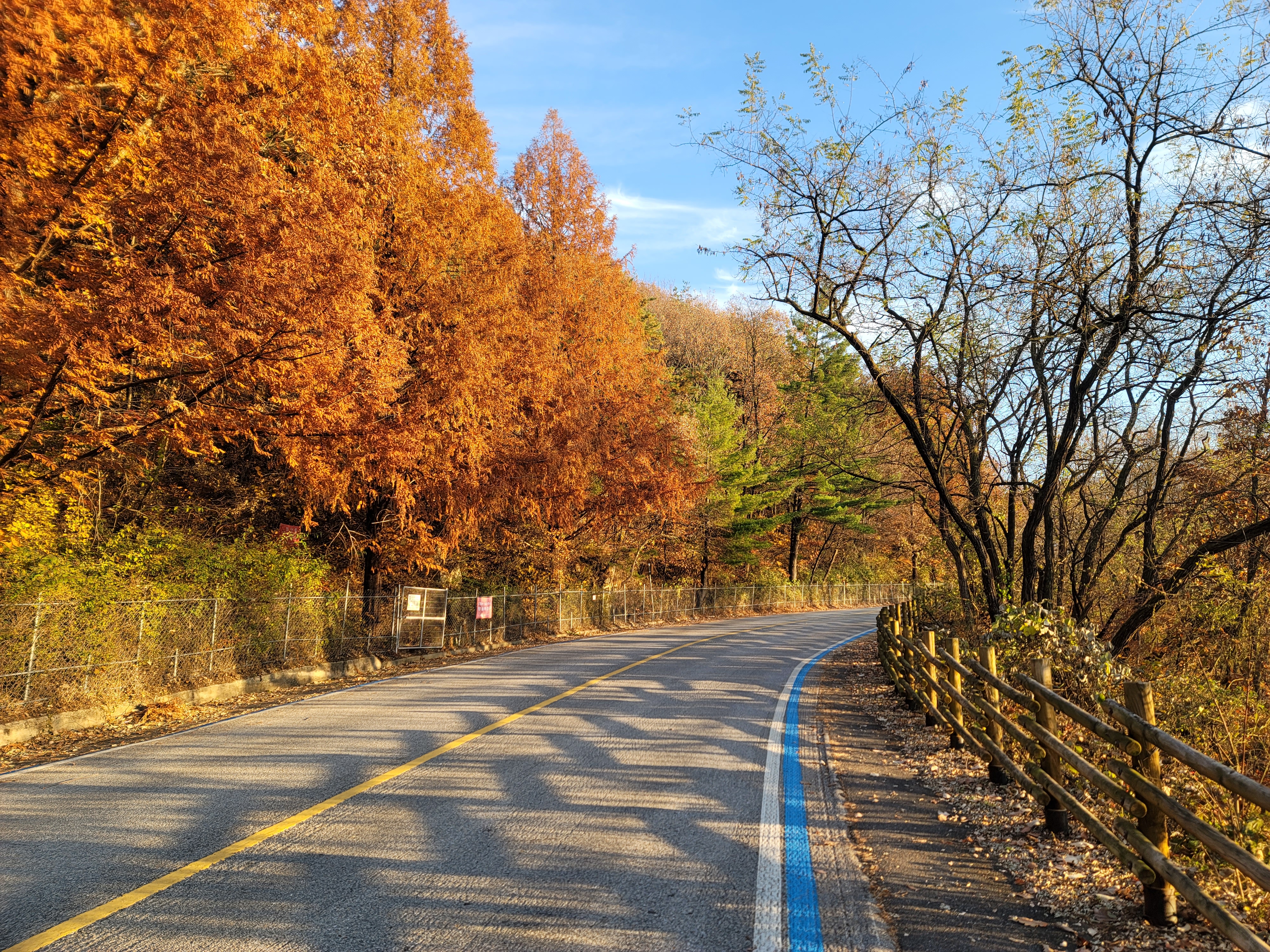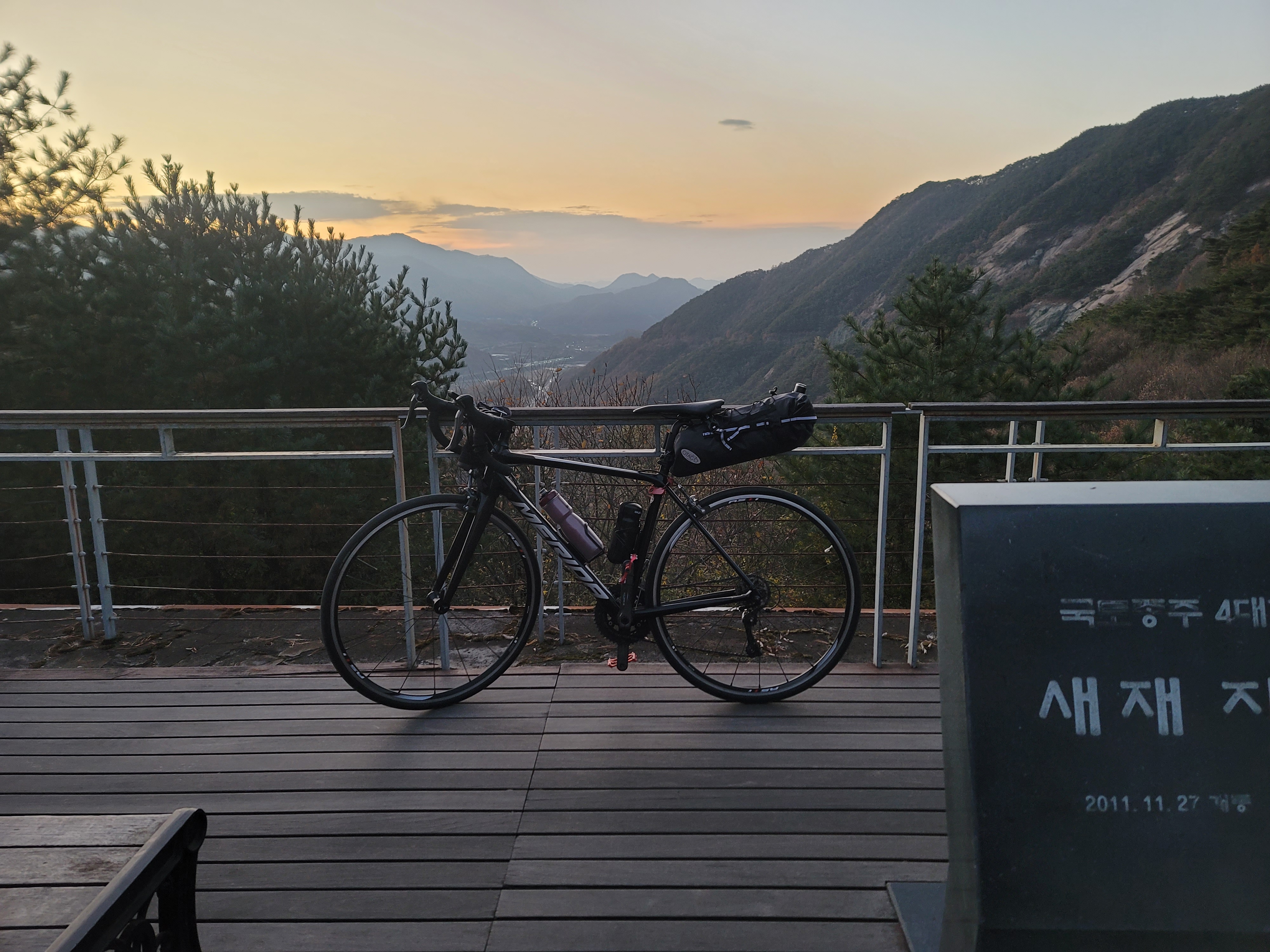 내리막에서는 이미 날이 어두워져서 전조등을 켰음에도 잘 보이지 않아 더욱 조심히 내려와야 했습니다. 바람막이를 입어서 춥지는 않았는데 반장갑이라 손가락 끝이 엄청 시려웠습니다.