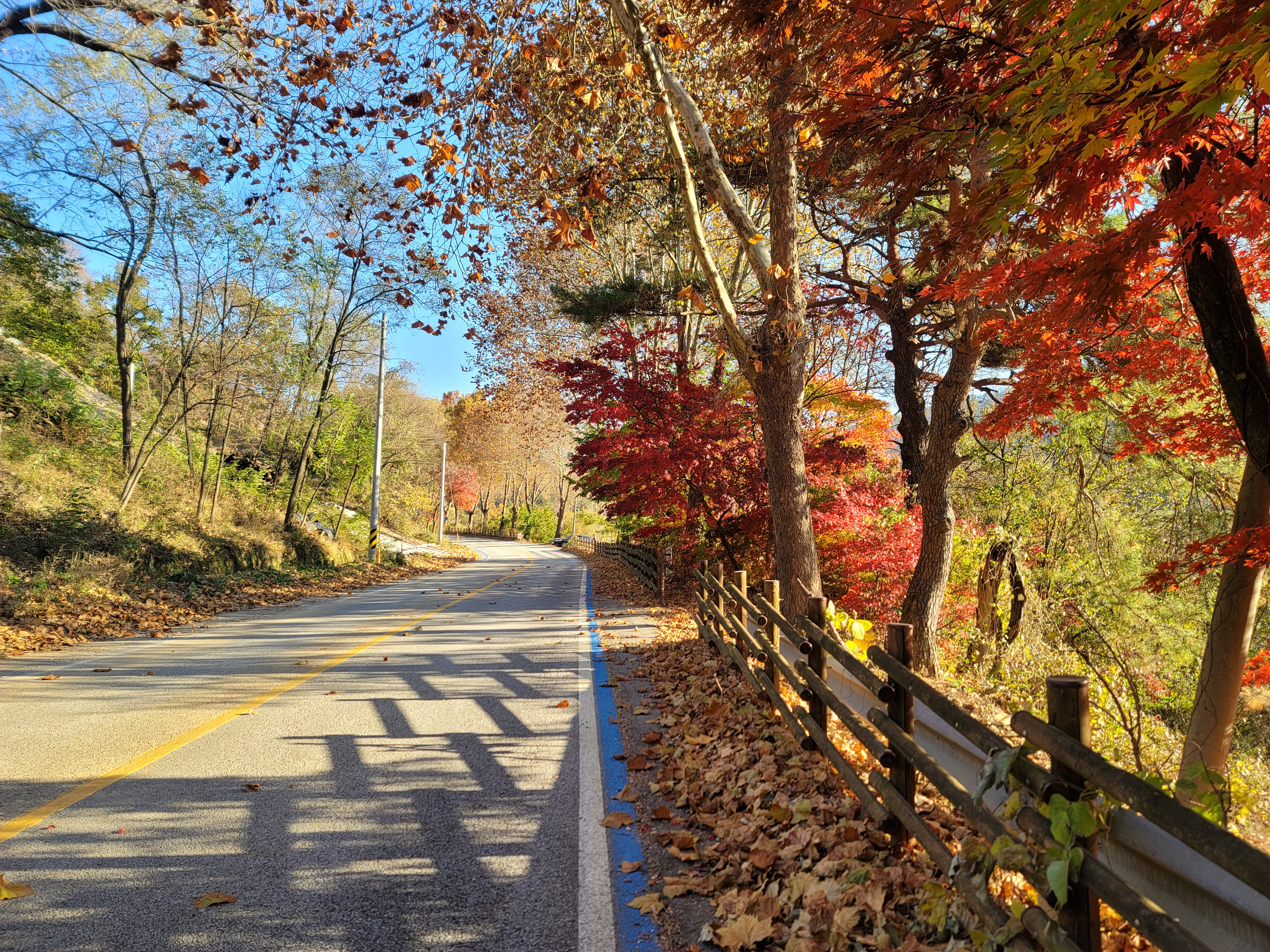 복잡한 시내를 빠져 나오면 한적한 길이 시작됩니다.