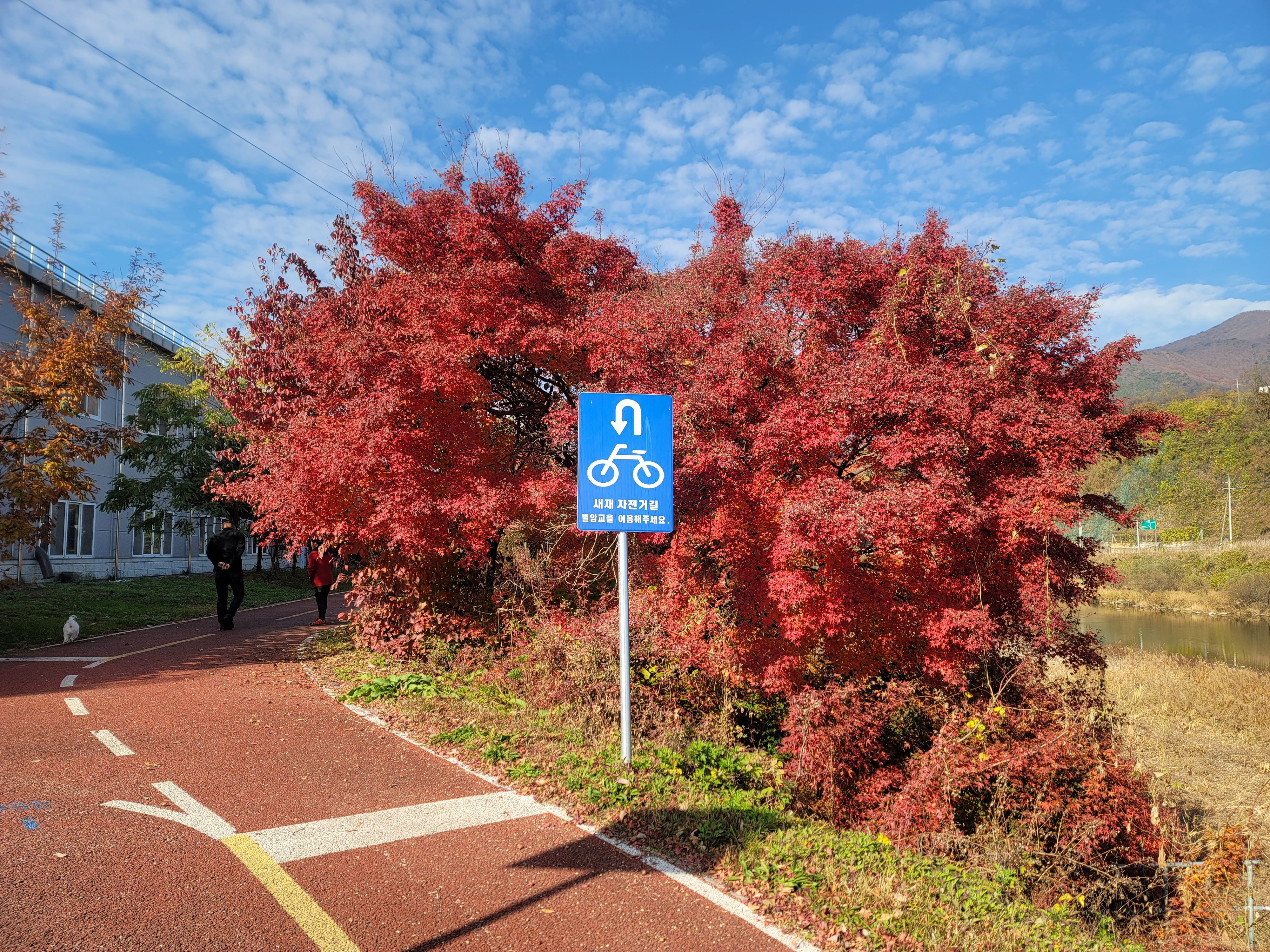 국토종주 시즌이 아니라 그런지 짐가방을 단 라이더들은 별로 없었고 국토종주를 하는 것으로 보이는 외국인 부부가 눈에 띄었습니다. 부부가 무거운 짐가방을 싣고 달리는데 어떻게 나보다 빨리 가는거지. -_-;