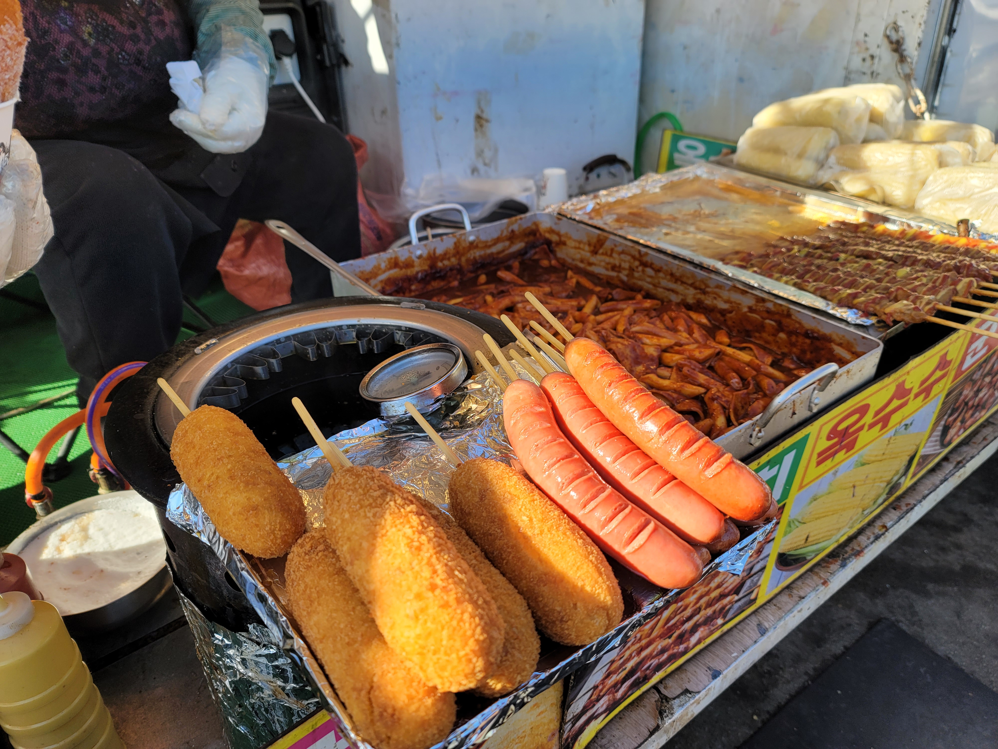 그나마 다행히도 상주보 전에 나오는 '경천섬' 유원지 입구에서 '핫도그' 를 파는 노점이 있어서 이것으로 허기를 때웠습니다.