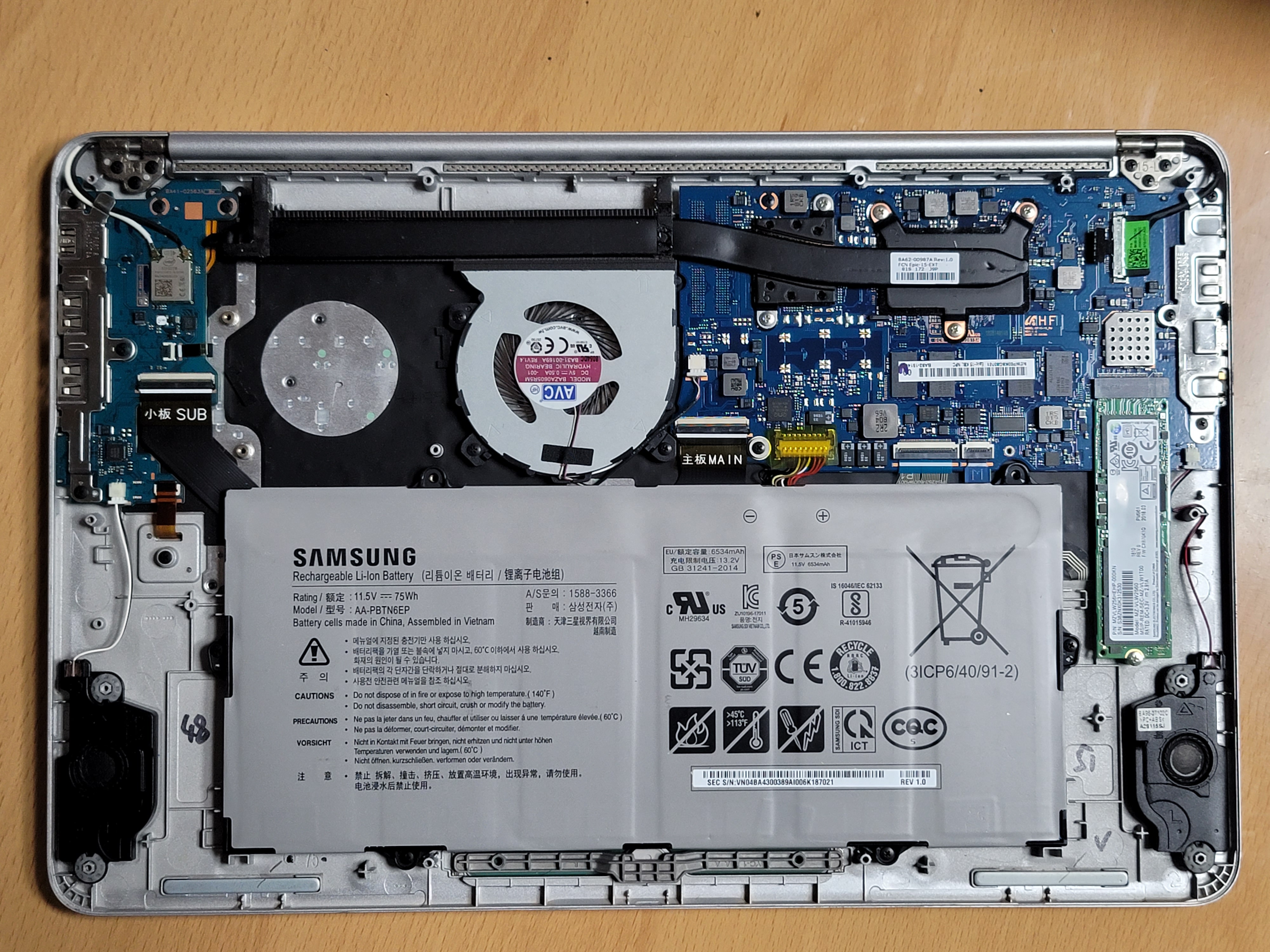 한가지 이상한건 냉각팬 자리가 2개인데 팬은 1개만 달려 있습니다. 둘째가 사용하는 9 Always 모델은 팬이 두개가 달렸는데, 그 모델은 외장형 그래픽 카드가 달려서 그런건지 아니면 이 모델만 원가 절감하느라 그런지는 잘 모르겠습니다.