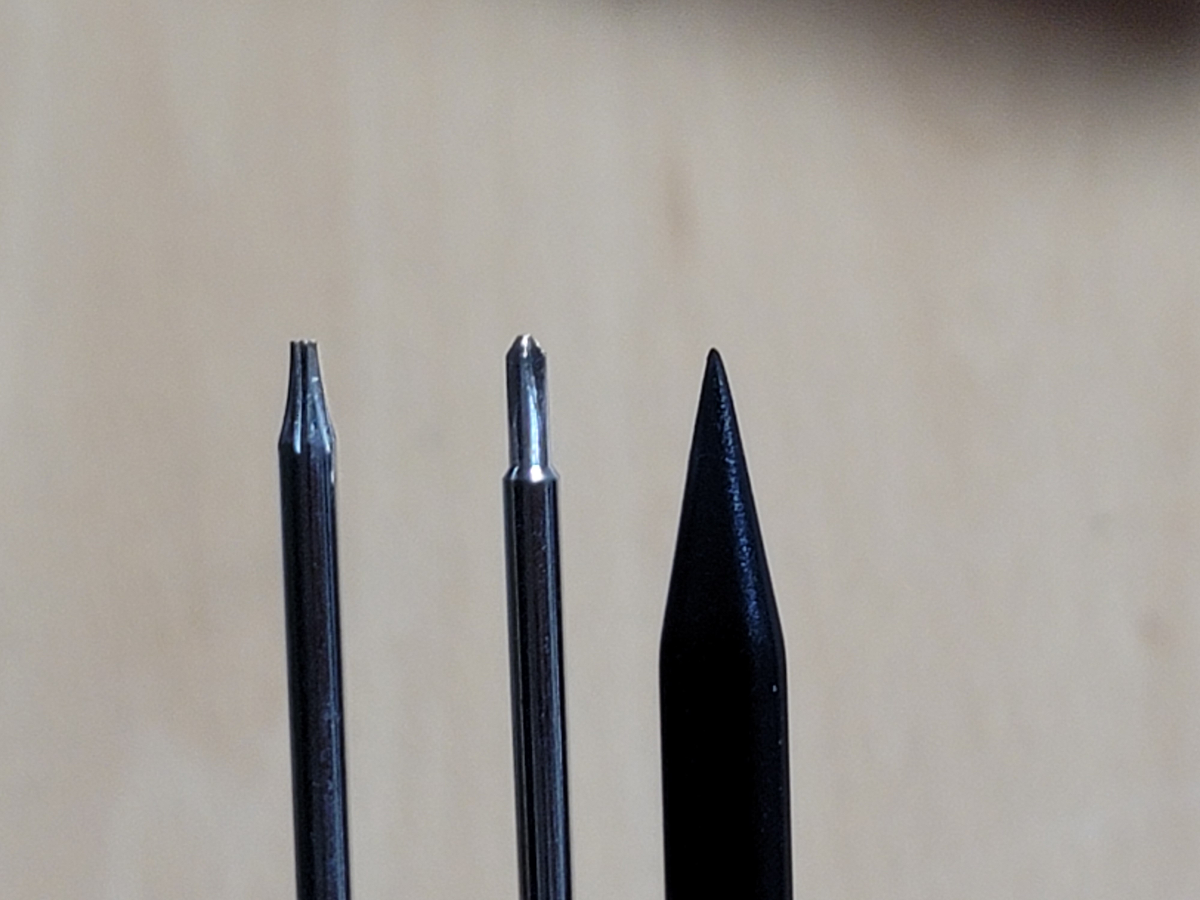 하나는 십자이고 하나는 아이폰 분해할 때 보았던 별 모양 드라이버 같습니다. 품질은 그때 것 보다는 나아보입니다.