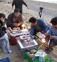 특이한 것은 이렇게 만든 불위에 직접 저녁밥을 짓도록 합니다. 다른데 가서 해보기 힘든 경험이네요. 장작불에 밥해먹기. 다른집들 밥은 잘 됐나 모르겠군요. 화로대는 콜맨 것인데. 탐나는 군요.